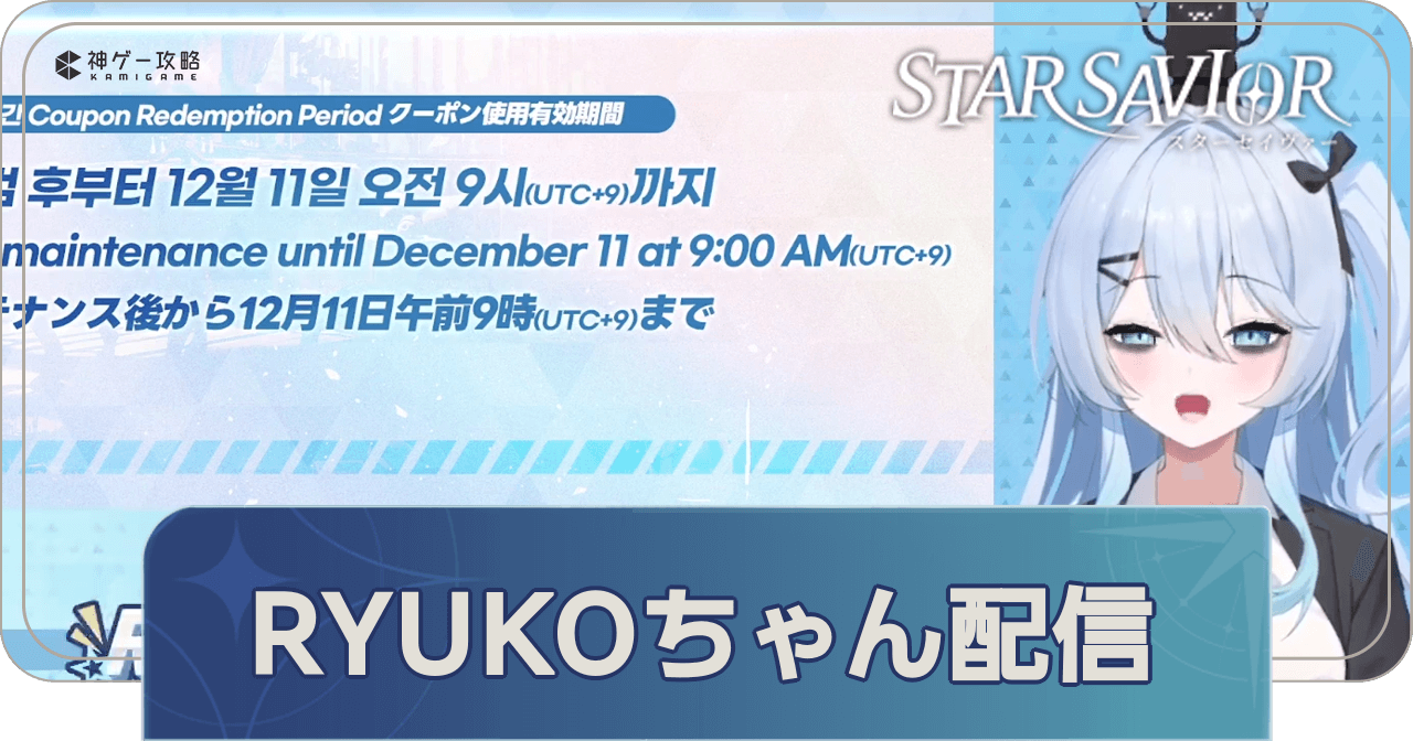 スターセイヴァーのRYUKOちゃん配信の最新情報をまとめてご紹介。生放送で発表されたスターセイヴァーのアップデート、イベントの情報が知りたい人はぜひどうぞ。