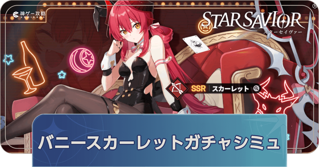 スターセイヴァーのバニースカーレット集中観測シミュレーターを掲載。単発や10連、好きなキャラが出るまで回せるガチャシミュレーターを掲載しているので、ガチャを引く前の運試しにどうぞ。