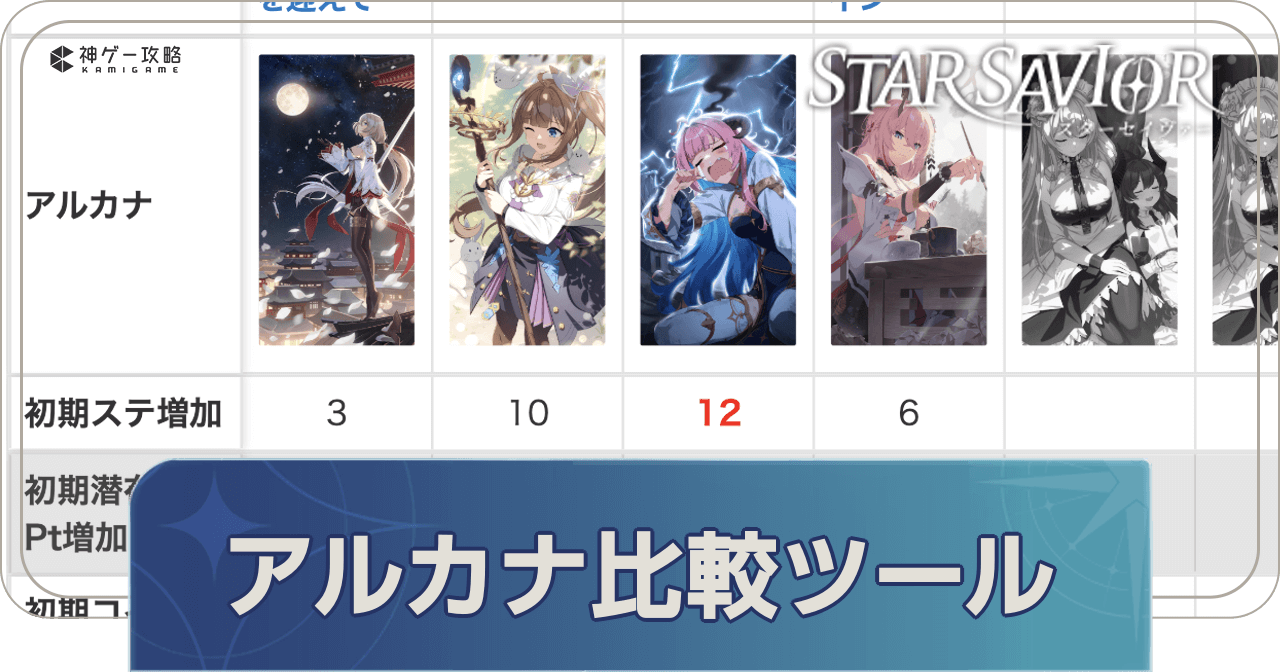 スターセイヴァーのアルカナ性能比較ツールを紹介。全アルカナの完凸性能を比較できるため、アルカナ編成の参考にどうぞ!
