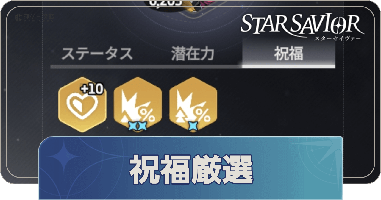 スターセイヴァーの祝福厳選を紹介。祝福の仕様やおすすめの旅の仲間、アルカナセットの例などを掲載しているので、スターセイヴァーで祝福厳選について知りたい時の参考にどうぞ。
