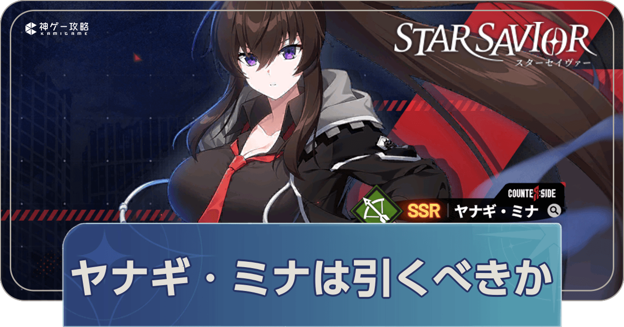 スターセイヴァーのヤナギ・ミナPUガチャは引くべきか?を紹介。ヤナギ・ミナの性能や評価、ピックアップガチャの開催期間についても掲載しているので、スターセイヴァーでヤナギ・ミナの集中観測を引くべきかについて知りたい時の参考にどうぞ。
