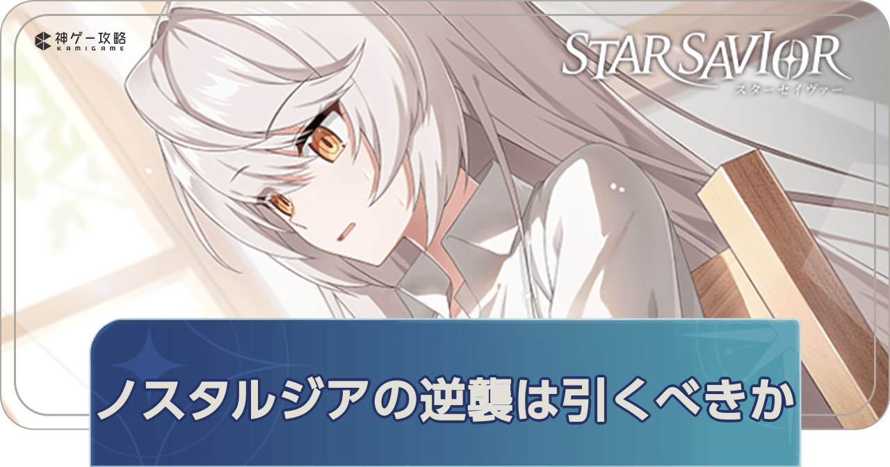 スターセイヴァーのノスタルジアの逆襲PUガチャは引くべきか?を紹介。ノスタルジアの逆襲の性能や評価、ピックアップガチャの開催期間についても掲載しているので、スターセイヴァーでノスタルジアの逆襲の集中観測を引くべきかについて知りたい時の参考にどうぞ。