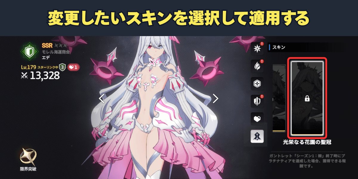 キャラのスキンは、ガントレットのランク戦シーズン報酬で入手できる。ゴールド5到達で1種類、プラチナ5到達で2種類のスキンが獲得可能だ。なお、ストラテジー戦のシーズン報酬では入手できないため、スキン目的の場合はガントレットのランク戦を進める必要がある点に注意しよう。