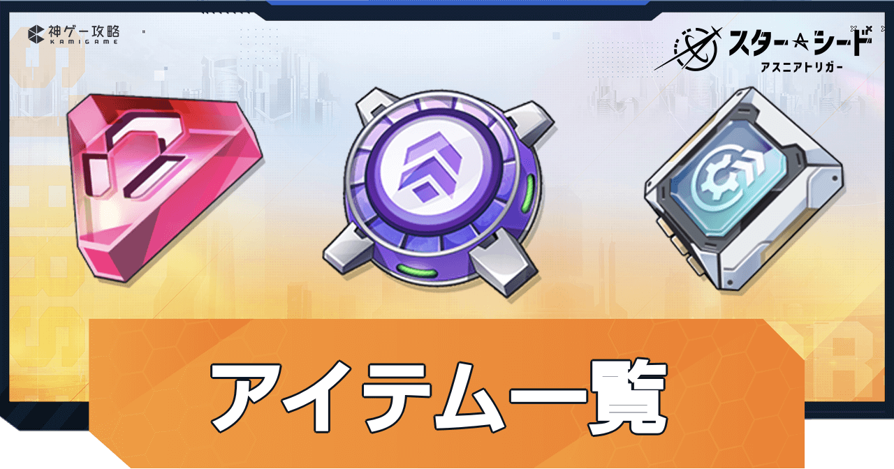 スターシード:アスニアトリガーのアイテムを一覧で紹介。アイテムの種類ごとに掲載しているため、スターシード:アスニアトリガーでアイテムを探す時の参考にどうぞ。