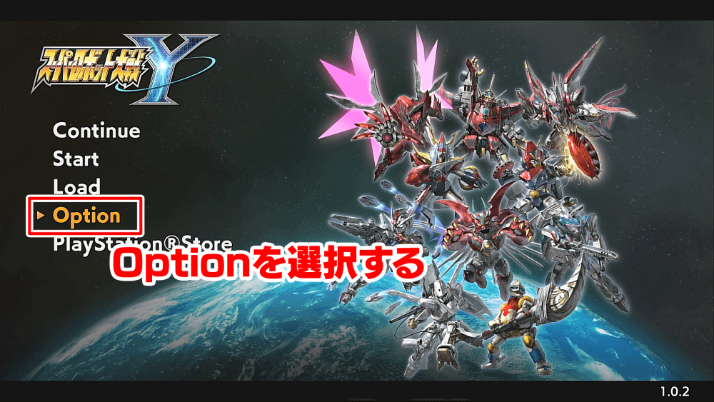 | 2 | タイトル画面で「Option」を選択 |