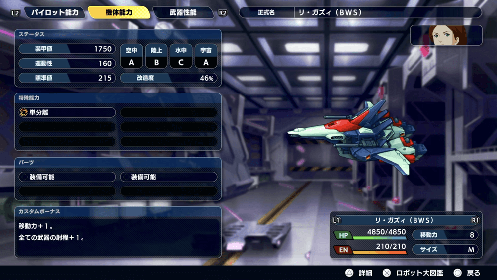 リ・ガズィ(BWS)は、サイド2A「ロンデニオンの鐘」またはサイド2B「白き流星が見た光」で加入。ルート分岐があるが、どちらのルートに進んでもリ・ガズィ(BWS)は入手可能だ。
