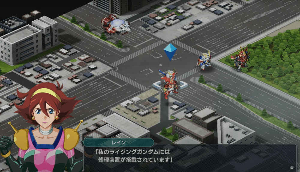 ライジングガンダムは、メイン1-4「開かれる扉」で加入。修理という回復能力を持っている機体なので、他の味方機体のHPが減っていたら、積極的に回復しよう。
