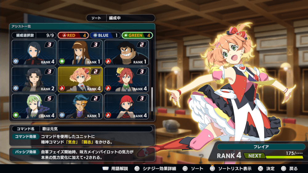 ・気合と闘志が汎用的で使いやすい ・パッシブの気力上昇も汎用的 ・終盤付近は気合が必要な場面が少ない |