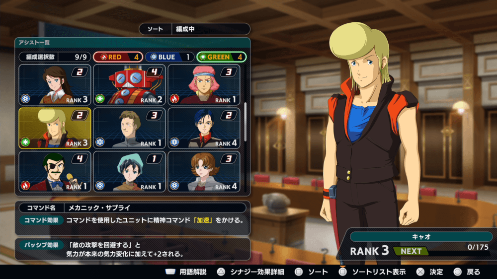 | 2 | 「敵の攻撃を回避する」と気力が本来の気力追加に加えて+1される |