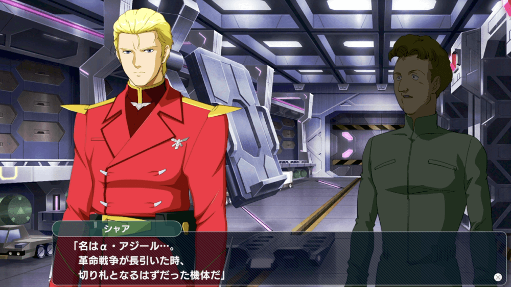 5-1B「刻まれた生命」を開始するまでに、シャアとクェス、ギュネイの撃墜数合計が150を超えると、ブリーフィング中にαアジールが手に入る。撃墜数が不足している場合は、先にサイドミッションを進めたり、バトルミッションで撃墜数を稼いでから戻ってこよう。