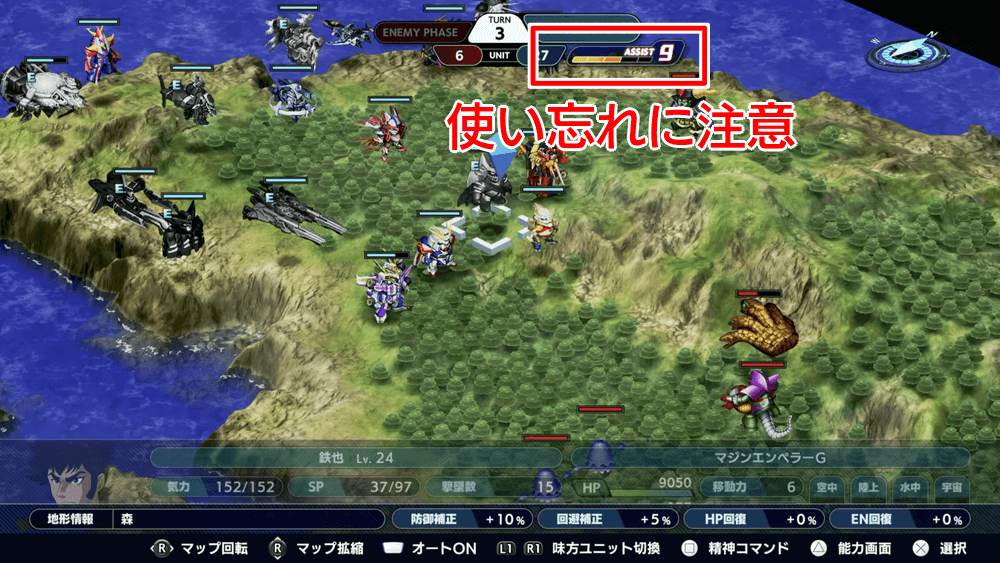 地球の救世主は前後半に分かれたステージで、前半部の難易度は低い。後半戦は再編成を行って出撃するため、持ち越せないアシストゲージは使い切っておくと良い。通常時は使いづらいメンバーを使っておくと、アシストレベル稼ぎが効率的に進む。