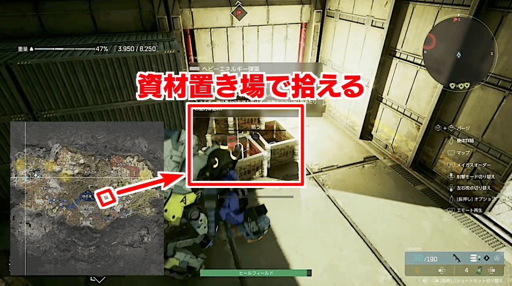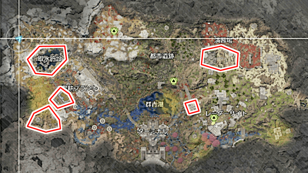 軍手やナノポリマー材といった人工物の素材は、各地にある資材置場にまとめて配置されている。特にワイヤーやクーラント液などは多く配置される傾向にあるため、不足したら各拠点を巡ってみるのがおすすめだ。