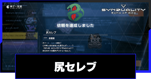 シンデュアリティ(SYNDUALITY Echo of Ada)の賞金首依頼「尻セレブ」を解説。依頼の攻略手順はもちろん、報酬や解放条件についても掲載しているので、シンデュアリティをプレイする際の参考にどうぞ。