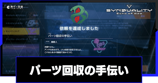シンデュアリティ(SYNDUALITY Echo of Ada)の賞金首依頼「パーツ回収の手伝い」を解説。依頼の攻略手順はもちろん、報酬や解放条件についても掲載しているので、シンデュアリティをプレイする際の参考にどうぞ。
