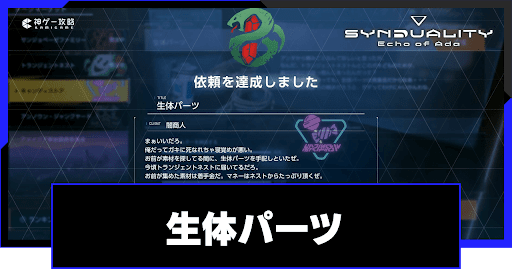 シンデュアリティ(SYNDUALITY Echo of Ada)の賞金首依頼「生体パーツ」を解説。依頼の攻略手順はもちろん、報酬や解放条件についても掲載しているので、シンデュアリティをプレイする際の参考にどうぞ。