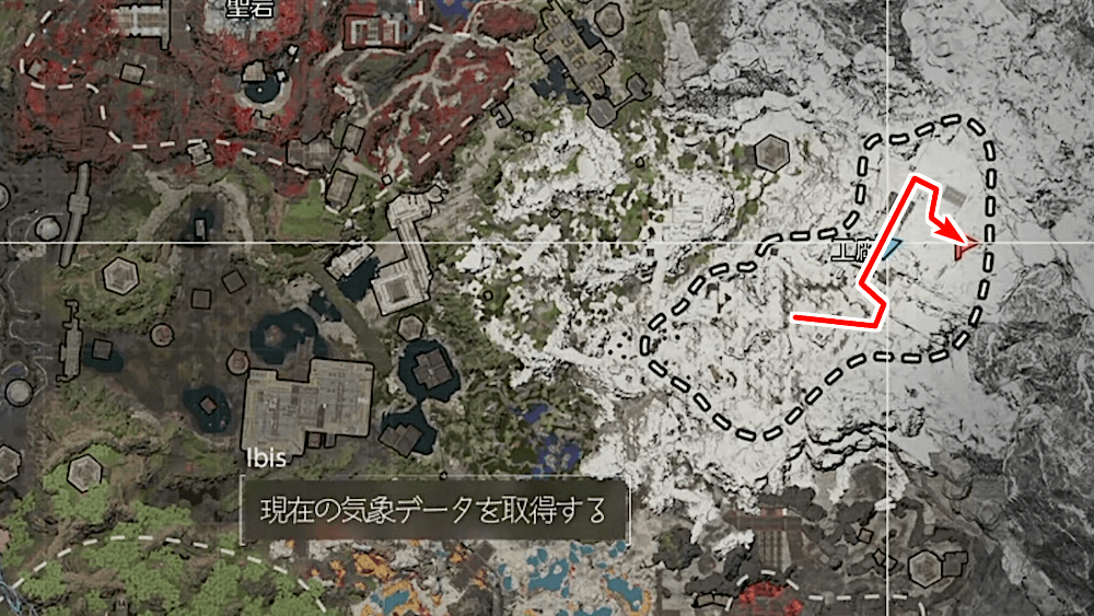 依頼を受けたらマップ東側にある工廠へ向かい、指定箇所で探索を行おう。周囲は盗賊団エリートが潜んでいるため、安全を確認してから探索を行うと良い。