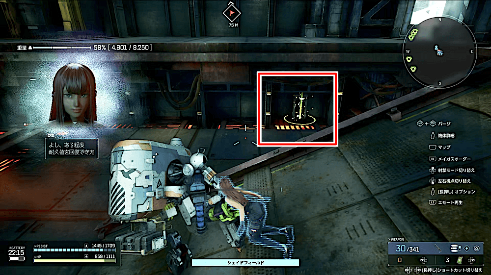 工廠を探索して入手物を持ち帰る