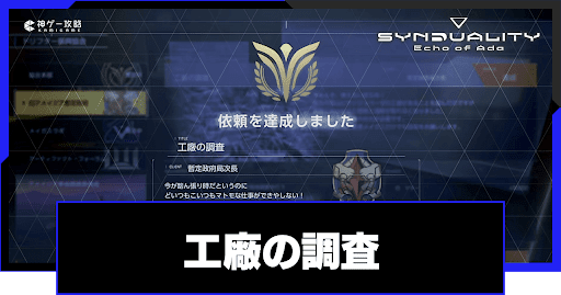 シンデュアリティ(SYNDUALITY Echo of Ada)の協会依頼「工廠の調査」を解説。依頼の攻略手順はもちろん、報酬や解放条件についても掲載しているので、シンデュアリティをプレイする際の参考にどうぞ。