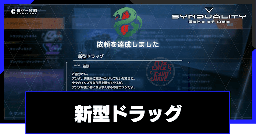 シンデュアリティ(SYNDUALITY Echo of Ada)の賞金首依頼「新型ドラッグ」を解説。依頼の攻略手順はもちろん、報酬や解放条件についても掲載しているので、シンデュアリティをプレイする際の参考にどうぞ。