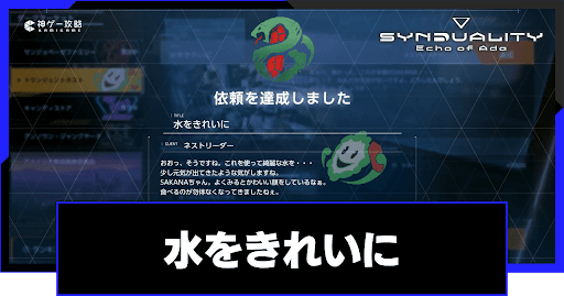 シンデュアリティ(SYNDUALITY Echo of Ada)の賞金首依頼「水をきれいに」を解説。依頼の攻略手順はもちろん、報酬や解放条件についても掲載しているので、シンデュアリティをプレイする際の参考にどうぞ。