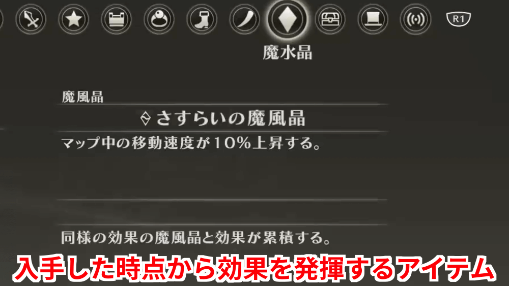 魔水晶は、特定の条件を満たして戦闘を繰り返すと出現する「ワンダリングエネミー」の撃破報酬でも入手できる。ワンダリングエネミーは出現するエリアの敵に比べて格段に強いため、撃破を狙う場合は余裕を持って敵を倒せるエリアで狙うのがおすすめだ。