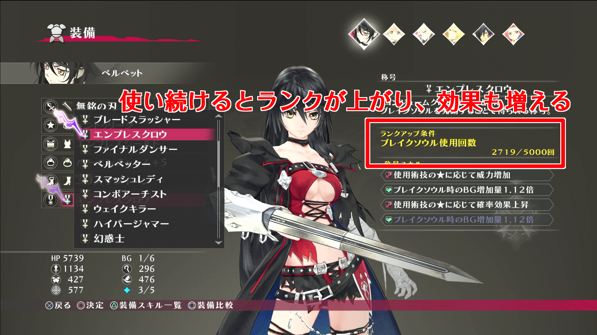 ・ブラッドキッカー(特技威力強化) ・エンプレスクロウ(BG増加量アップ) |