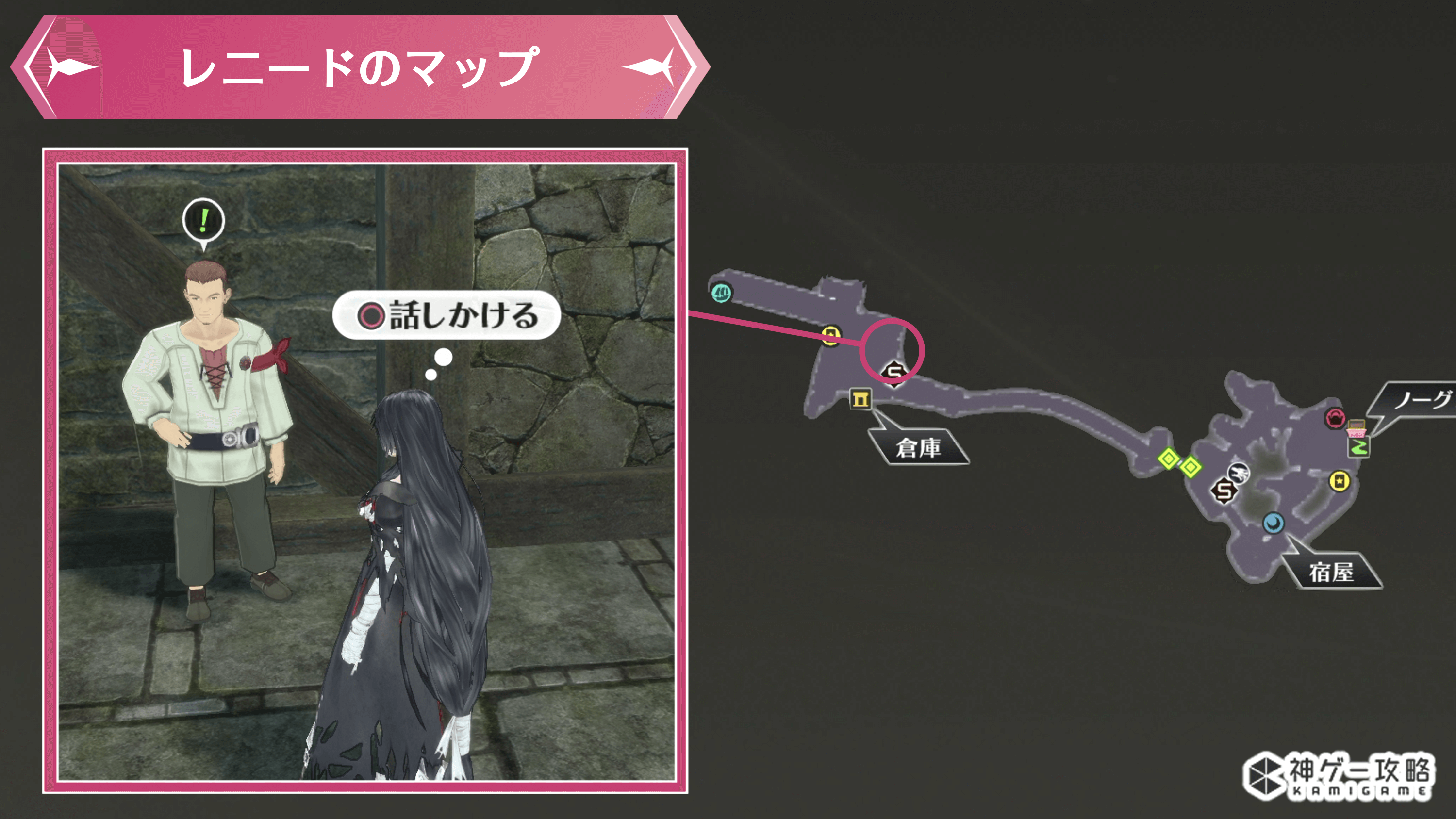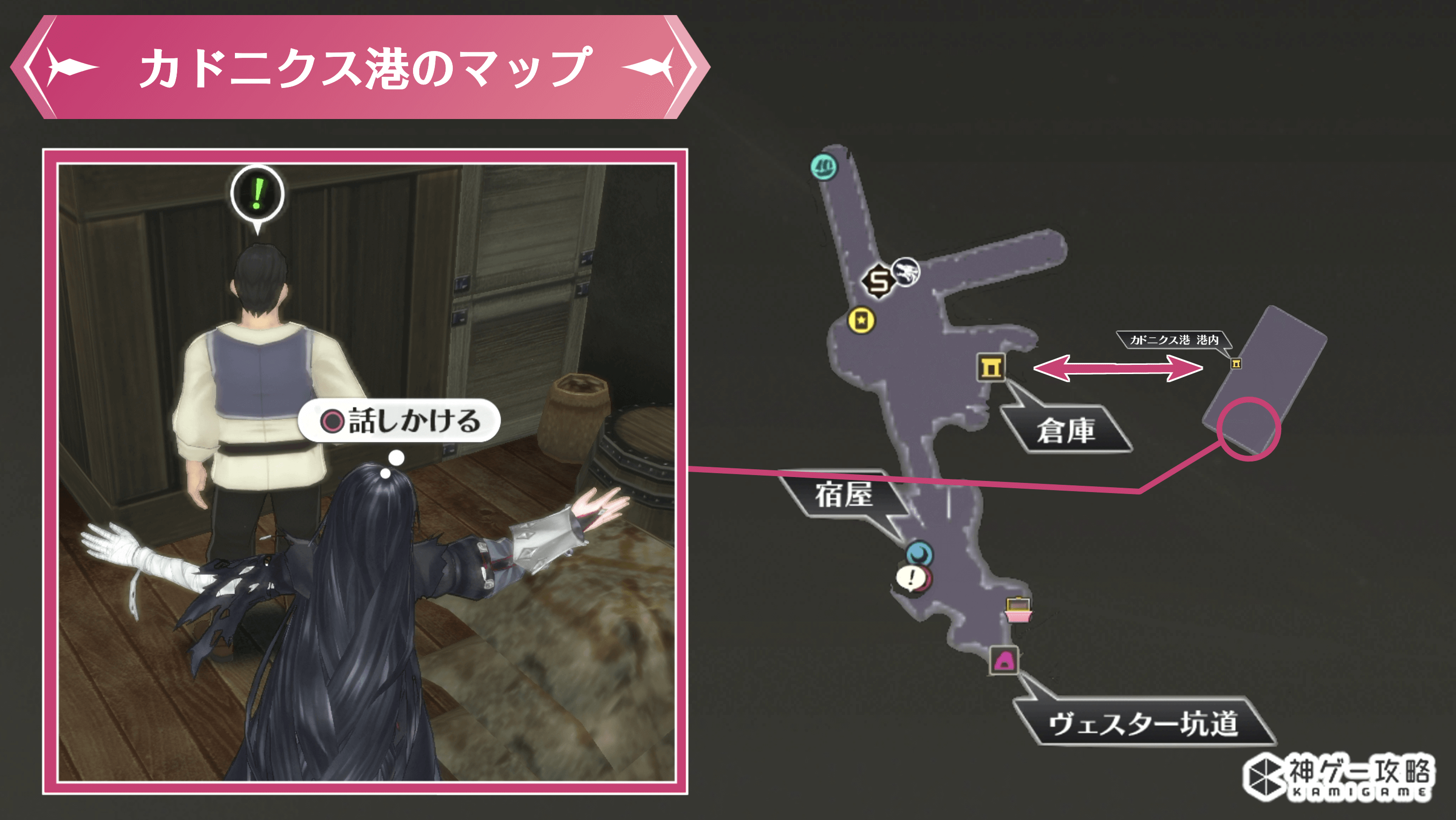3カドニクス港の倉庫でドネラに話しかける