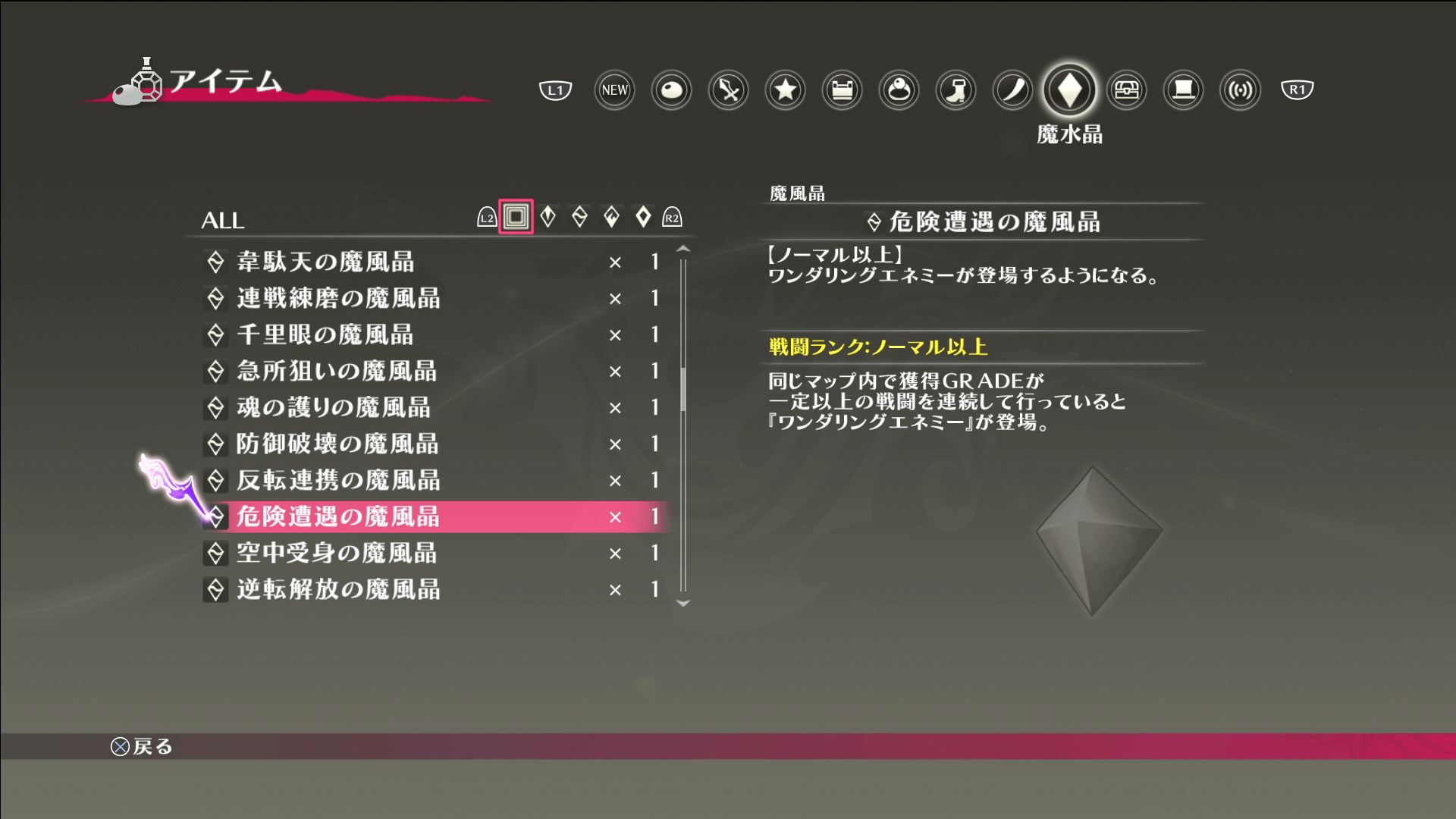 | 危険遭遇の魔風晶を入手する入手前は一切出現しない |