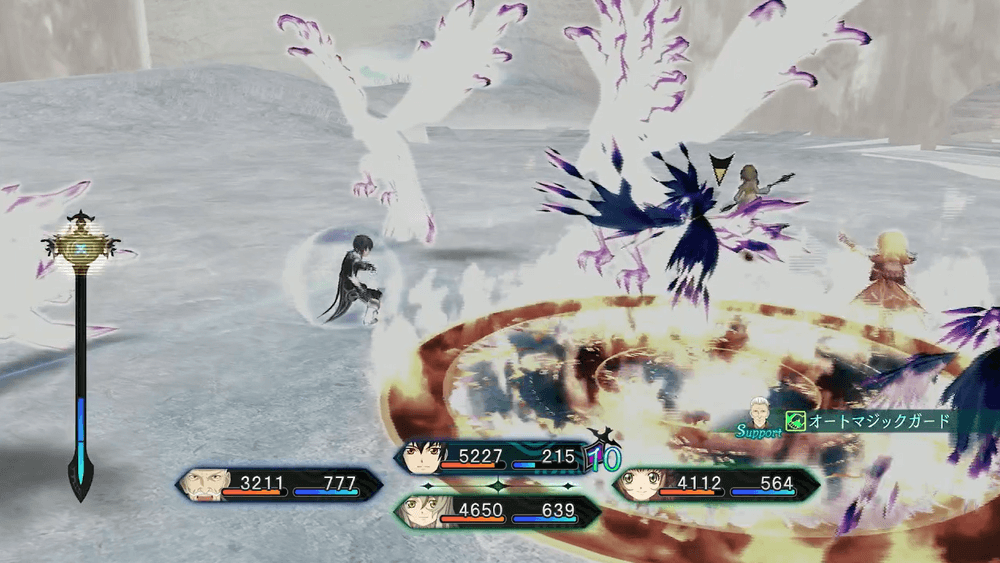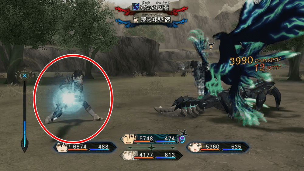 ミラが持つ特性「魔技」により、ミラは精霊術をそのまま使うか、魔技として使うかで使い分けられる。ミラが精霊術を使う際に、発動ボタンを単押しすれば、詠唱無しの魔技として使用可能だ。魔技は空中でも発動できるため、ミラの空中戦に組み込もう。