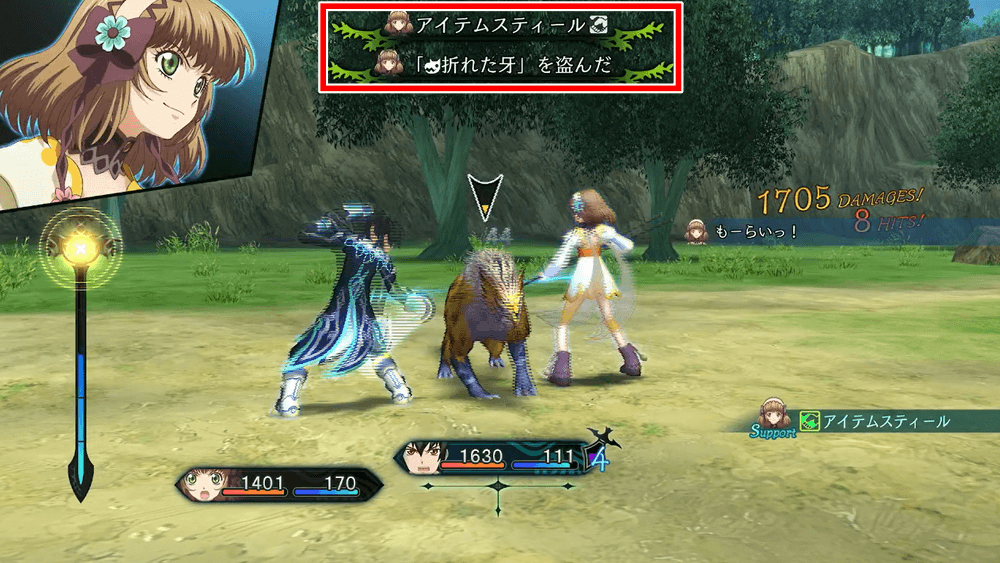 レイアは、リンク能力「アイテムスティール」により、敵をダウンさせた際に一定確率でアイテムを盗めるのが特徴だ。ジュードとのリンク相性が良く、ダウン性能の高い転泡と合わせれば、自然とアイテムが集まっていく。レイア自身は支援能力が高いキャラであるため、操作はCPUに任せると良い。