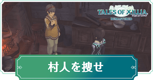 テイルズオブエクシリアのサブイベント「村人を捜せ」を解説。エクシリアリマスター「村人を捜せ」の発生時期や受注場所、受注する条件に加え、攻略手順と報酬についても掲載。エクシリア攻略の参考にどうぞ。