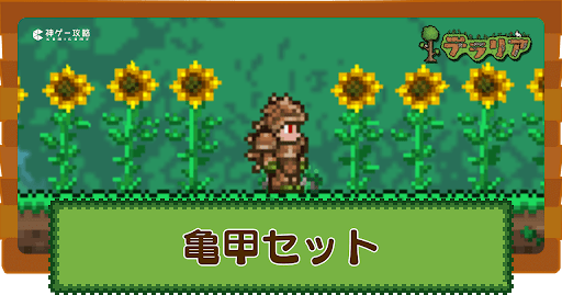 テラリア(Terraria)の防具「亀甲」セットの性能と入手方法の紹介。亀甲セットの評価や作成に必要な各素材の入手方法についても掲載しているので、テラリアで亀甲セットについて知りたい時の参考にどうぞ。