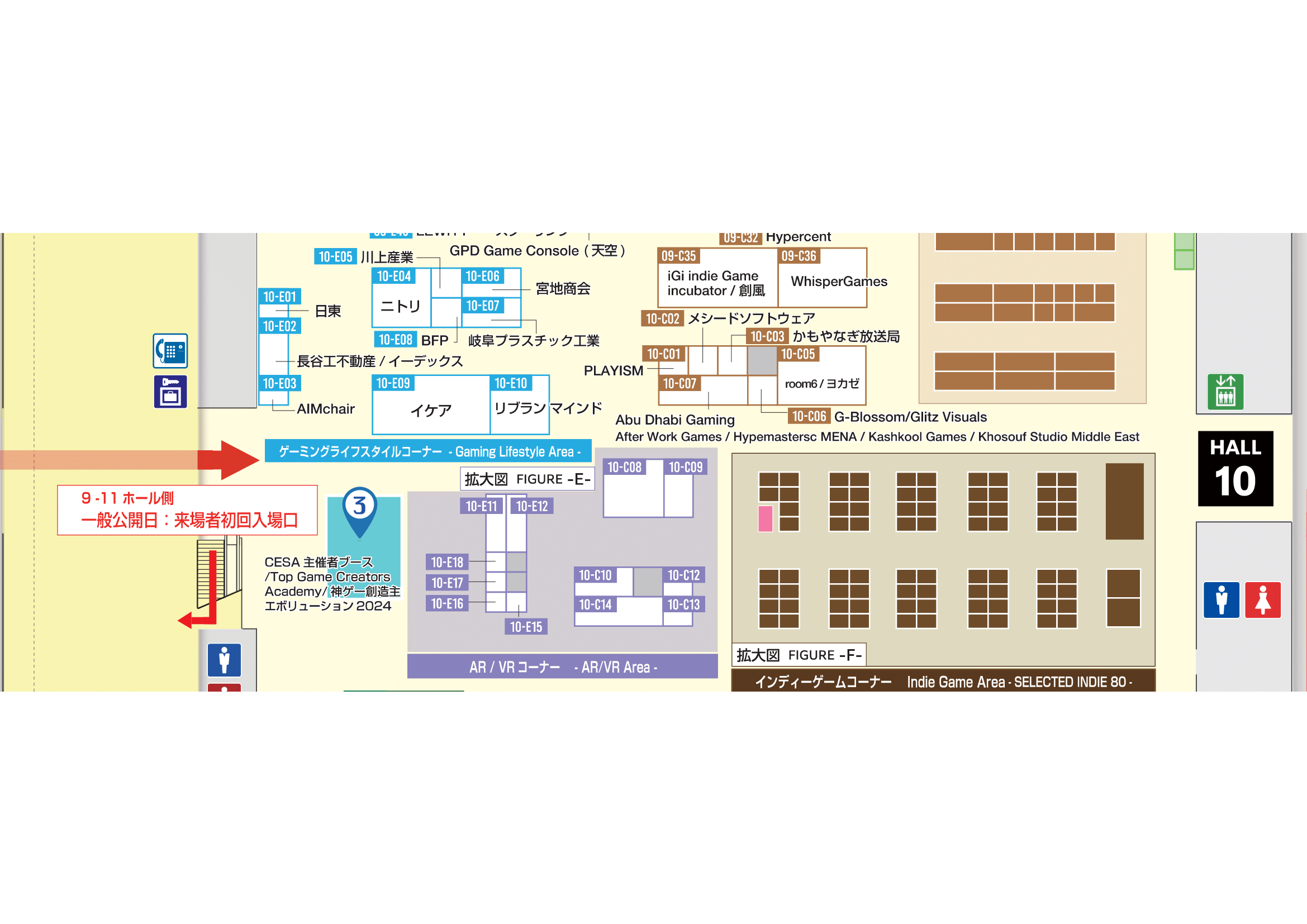 東京ゲームショウのインディーゲームコーナーは9-11ホールにある。一般公開の初回入場口から見て奥側に設けられているため、迷わず向かいたい場合は10ホールから入ってそのまま直進すればOKだ。