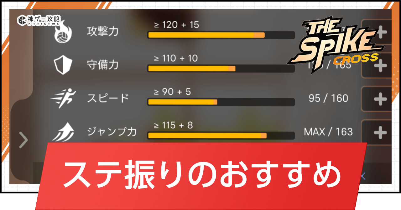 ザ・スパイク・クロスにおけるステ振りのおすすめと効果一覧について解説。ザスパイクの育成方法やステータス一覧、能力の効果とメリットや、強化とリセットのやり方についても掲載しています。
