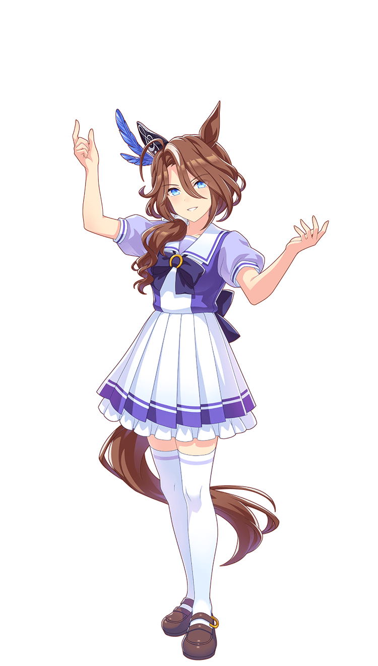 | レース中盤に速度がわずかに上がる、スキル発動時、前方にいると効果が変わりわずかに前に出る <先行> |