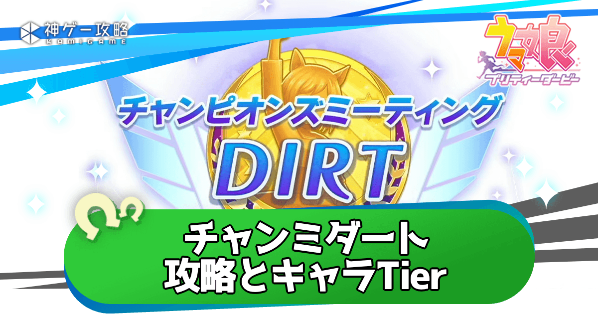 ウマ娘の「4月チャンミ」攻略を紹介。4月チャンミ(ダート/デルマー競技場)のおすすめキャラtierをはじめ、チーム編成・因子継承・サポカ編成・育成論なども掲載しているため、ウマ娘チャンミの参考にどうぞ!