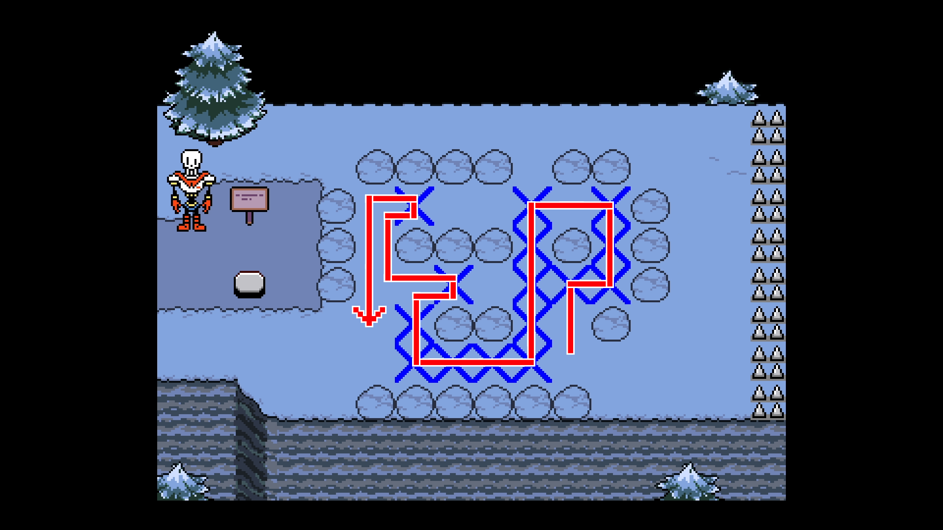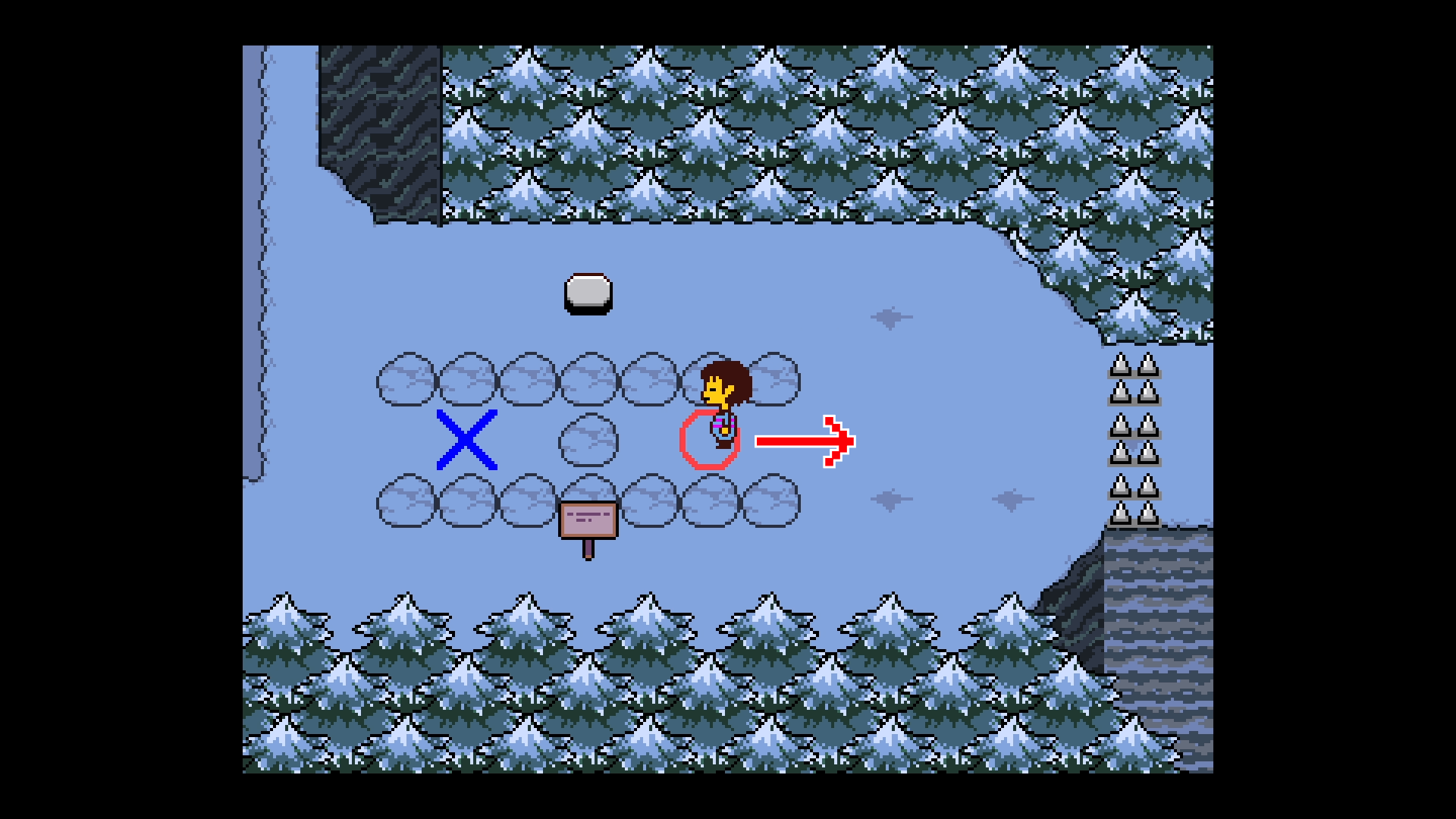 Undertale(アンダーテール)における、スノーフルをNルートで攻略する方法を解説!拾えるアイテムや出現するモンスターもまとめているので、アンダーテールのスノーフルマップをNルートで攻略する際の参考にどうぞ!