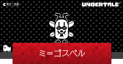 Undertale(アンダーテール)における、「ミ=ゴスペル」を攻略する方法を解説!ミ=ゴスペルの攻略のコツや見逃す方法に加え、ミ=ゴスペルの攻撃のパターンと避け方を記載しているため、アンダーテールを攻略する際の参考にどうぞ!
