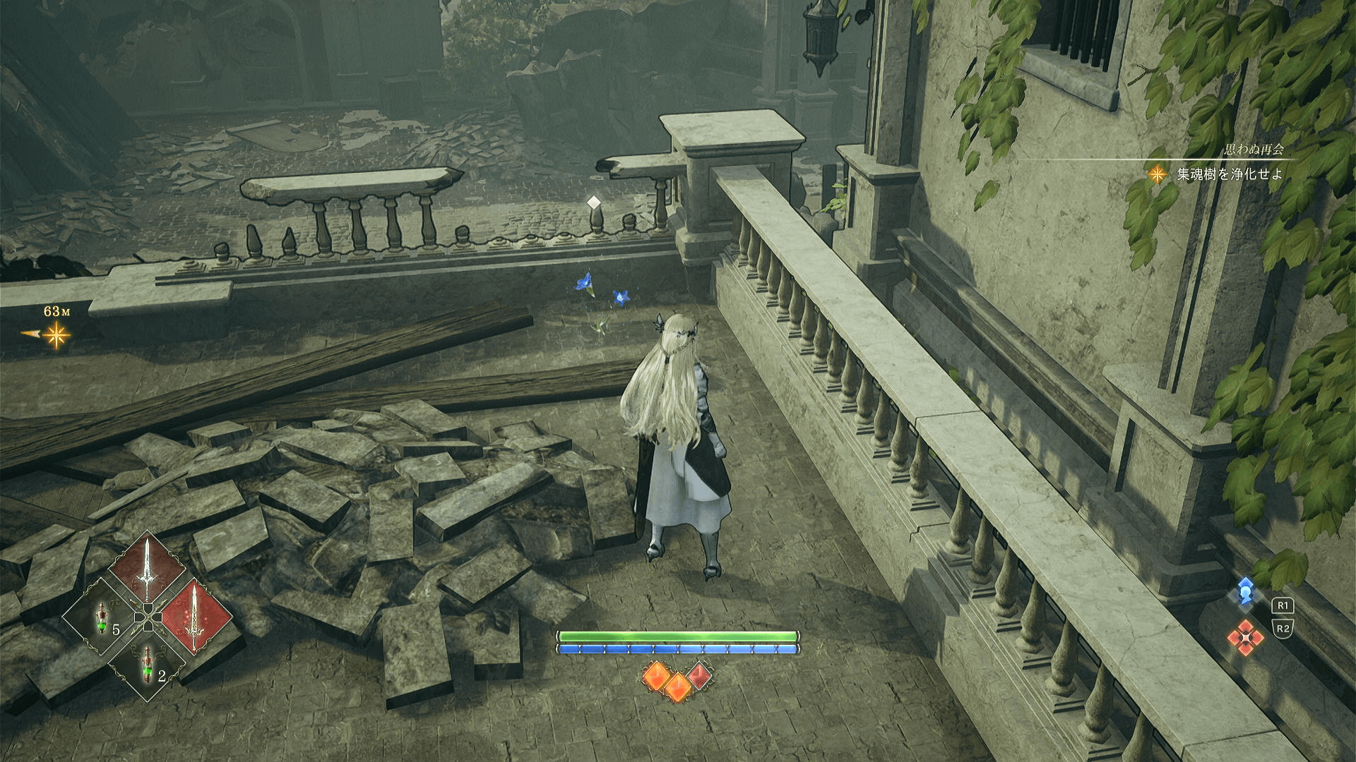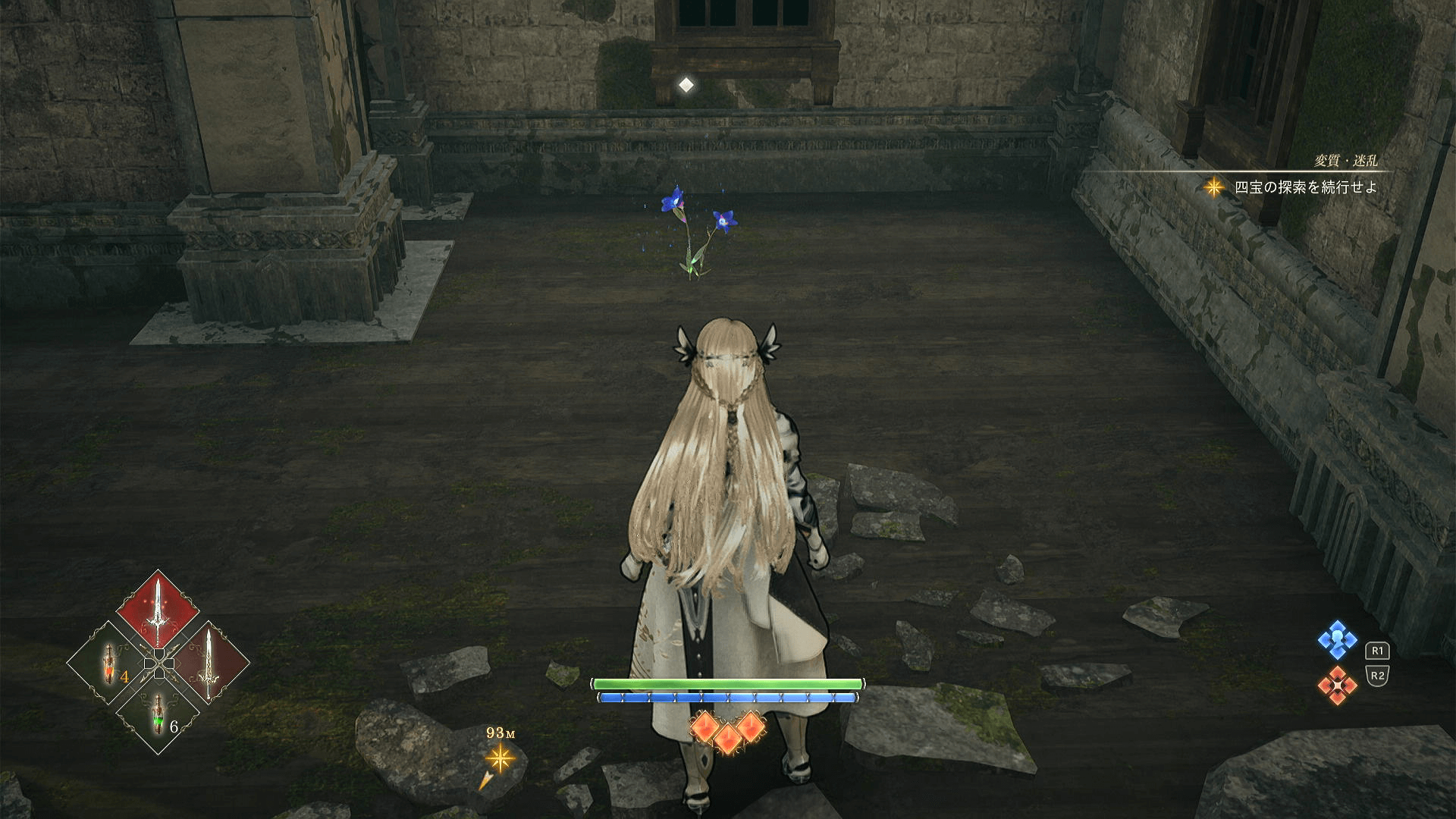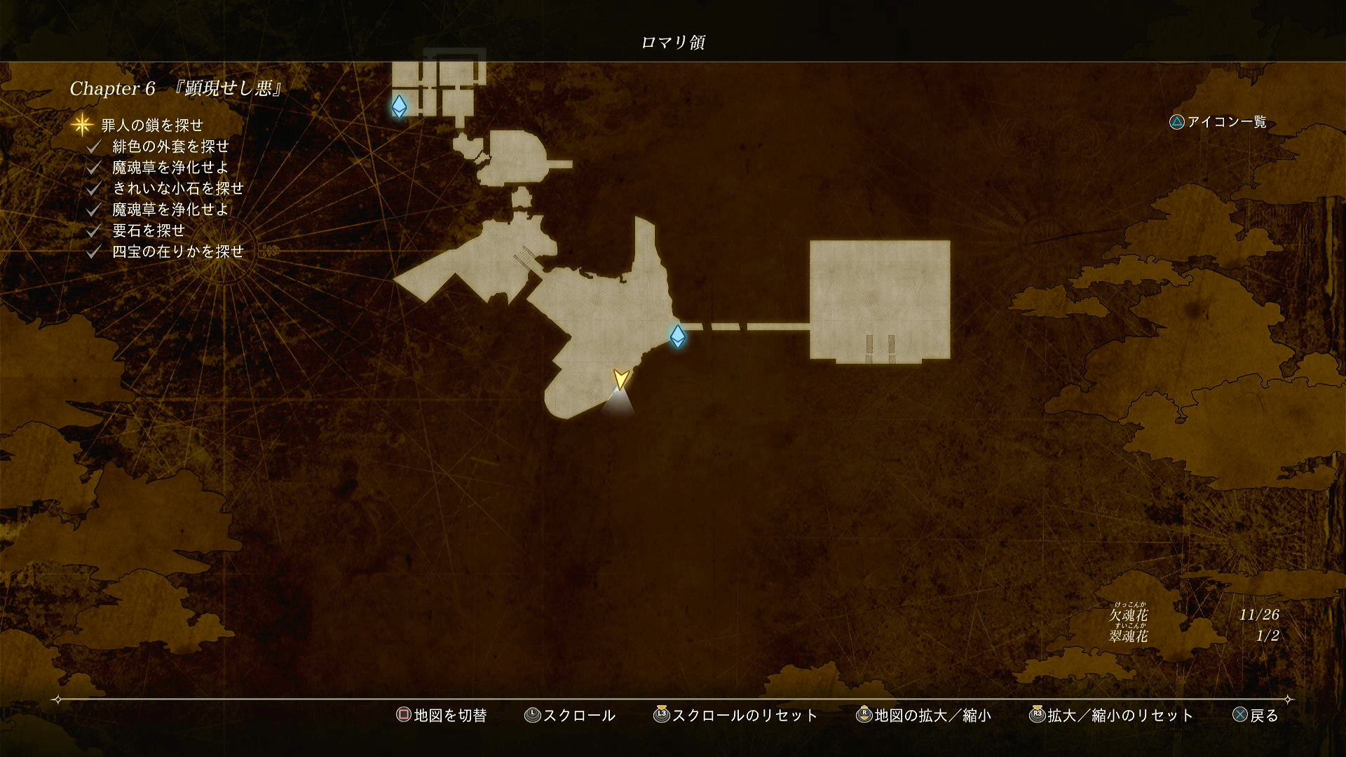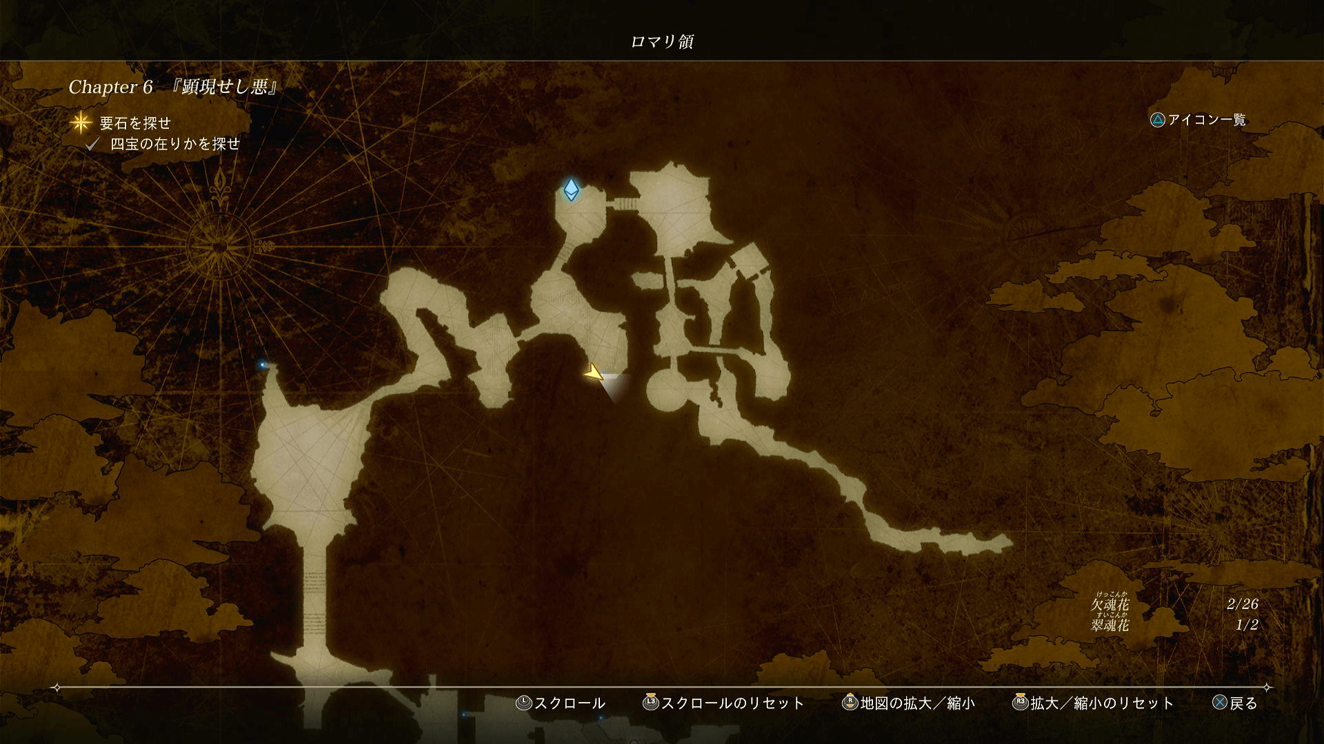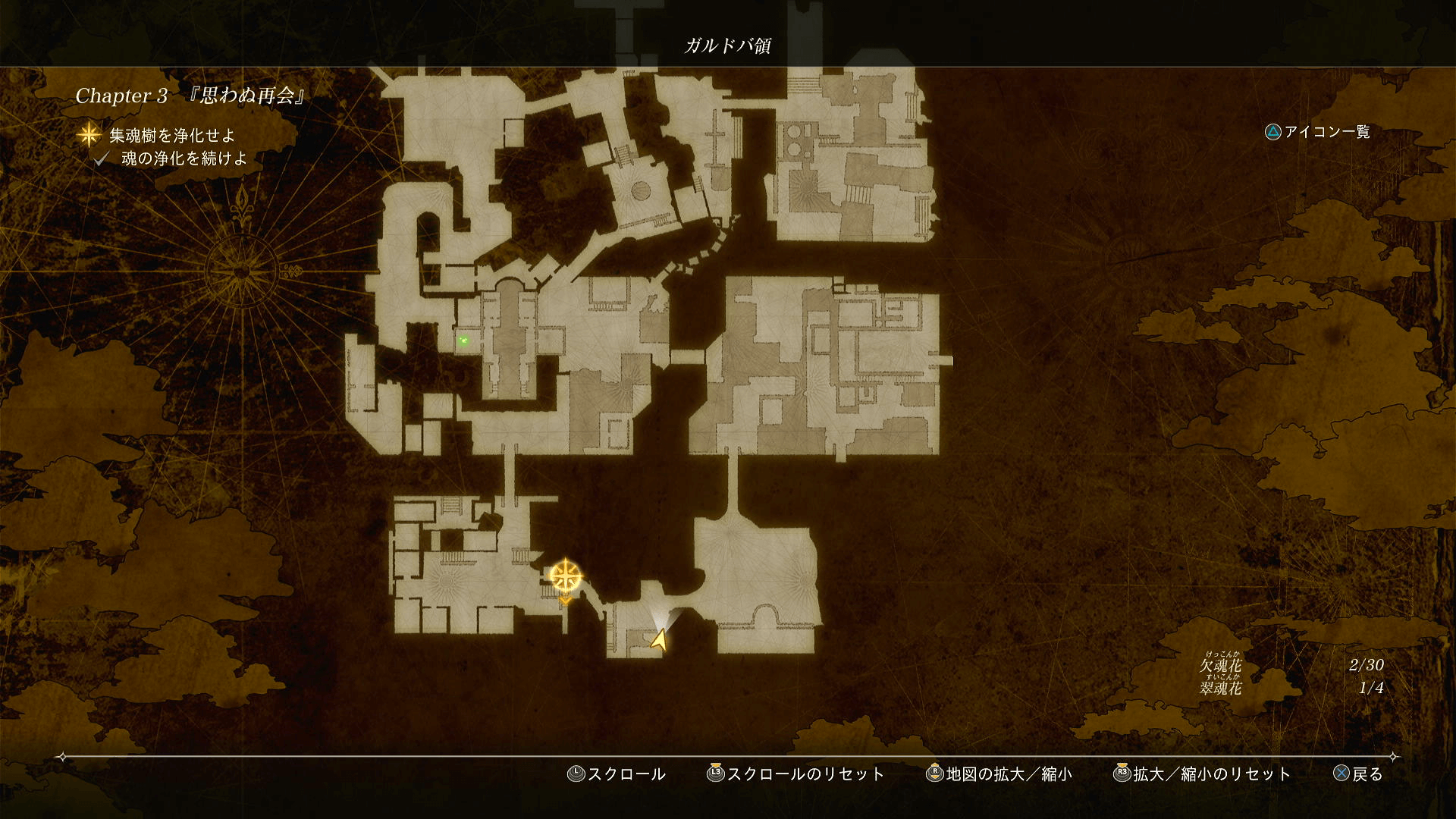 欠魂花とは、各マップに点在する収集アイテムのことだ。欠魂花は青い花の見た目をしており、近づいてL2ボタンを押すと入手できる。