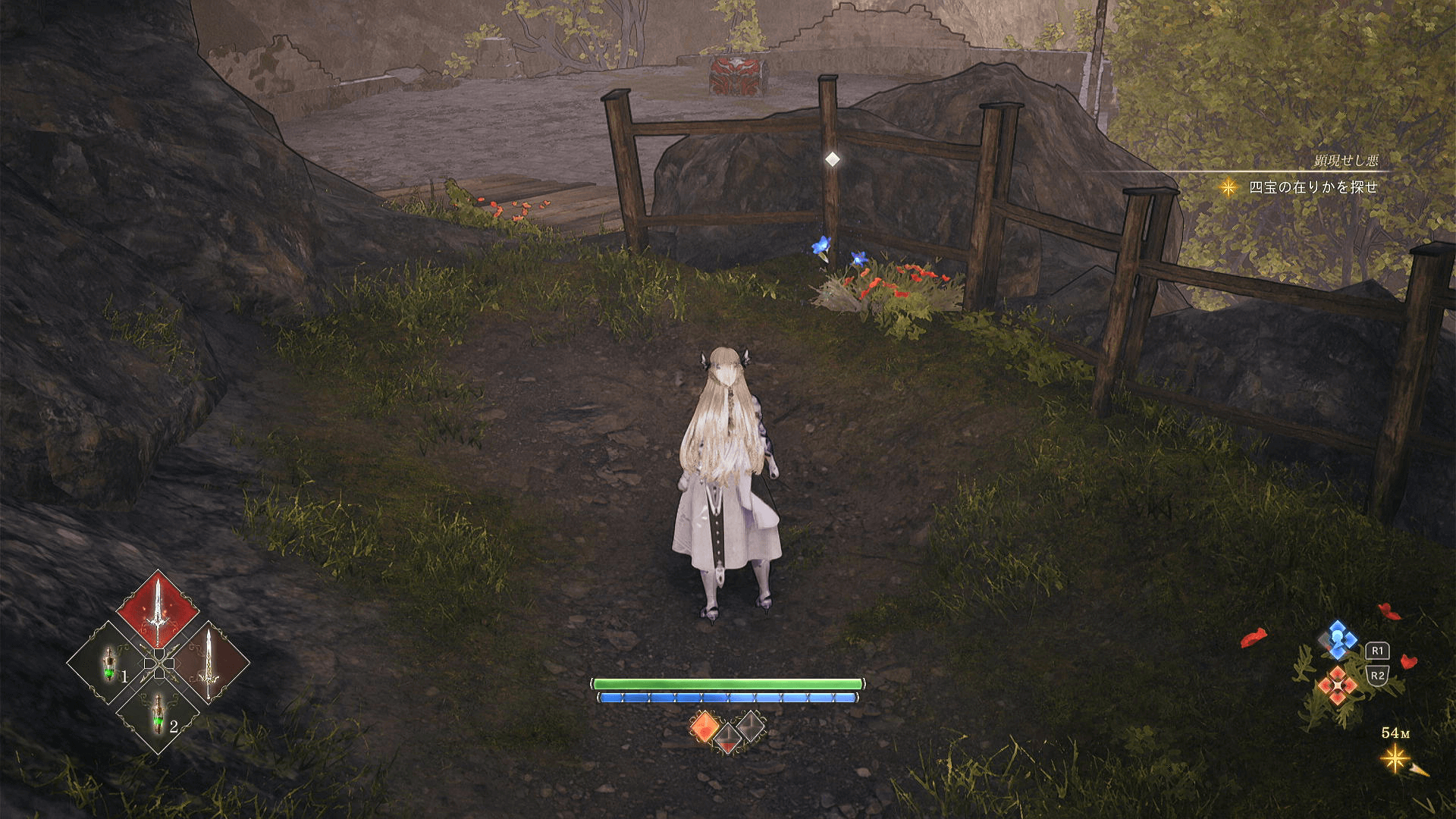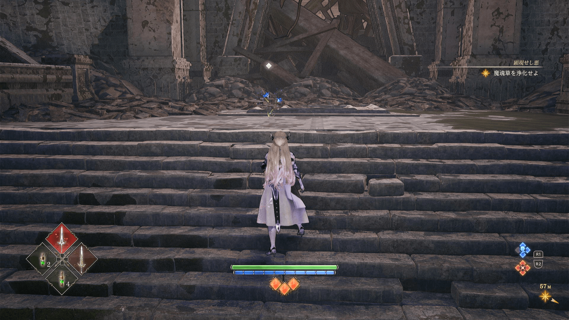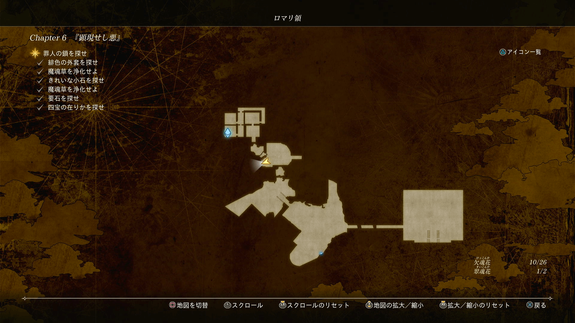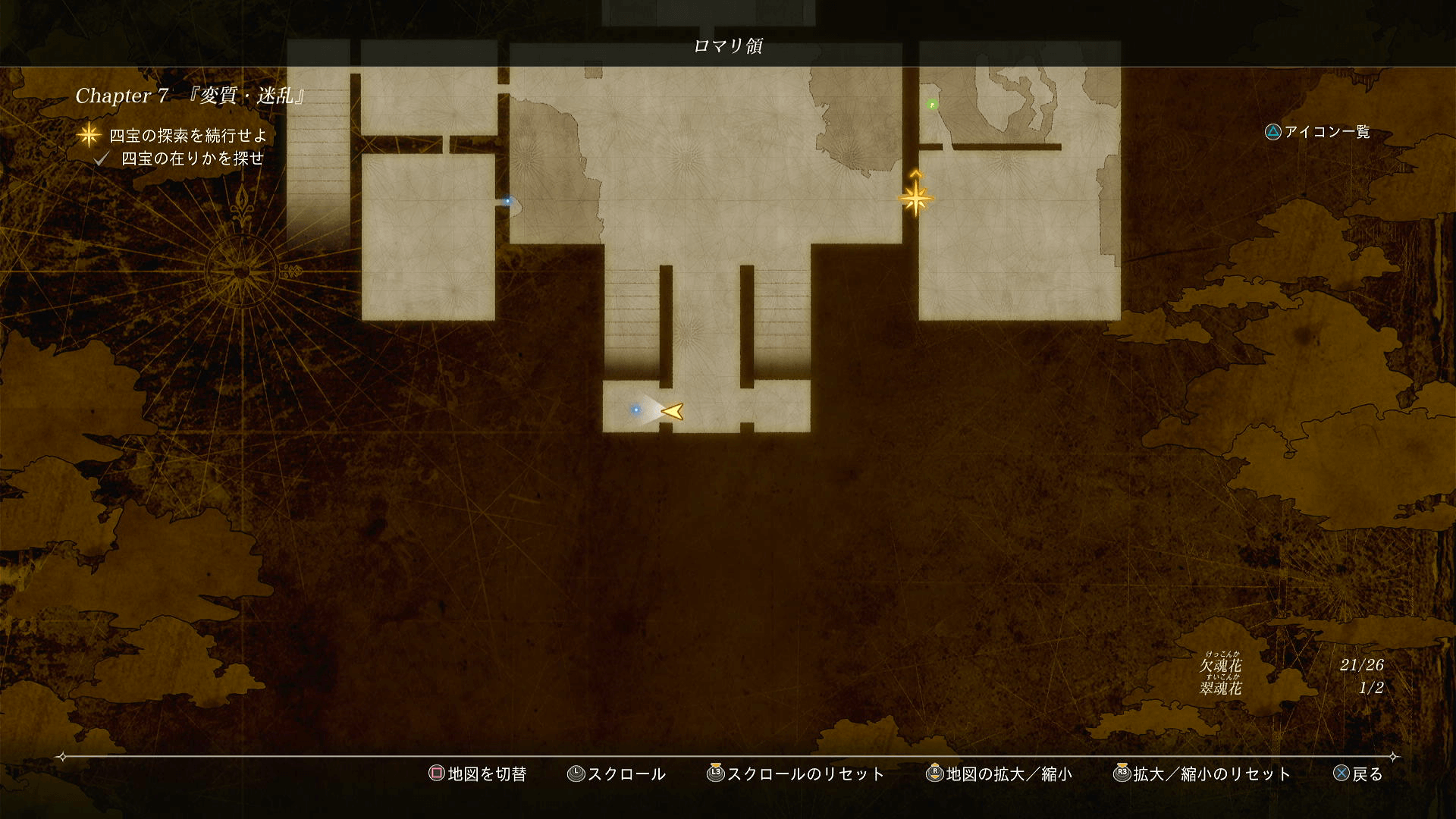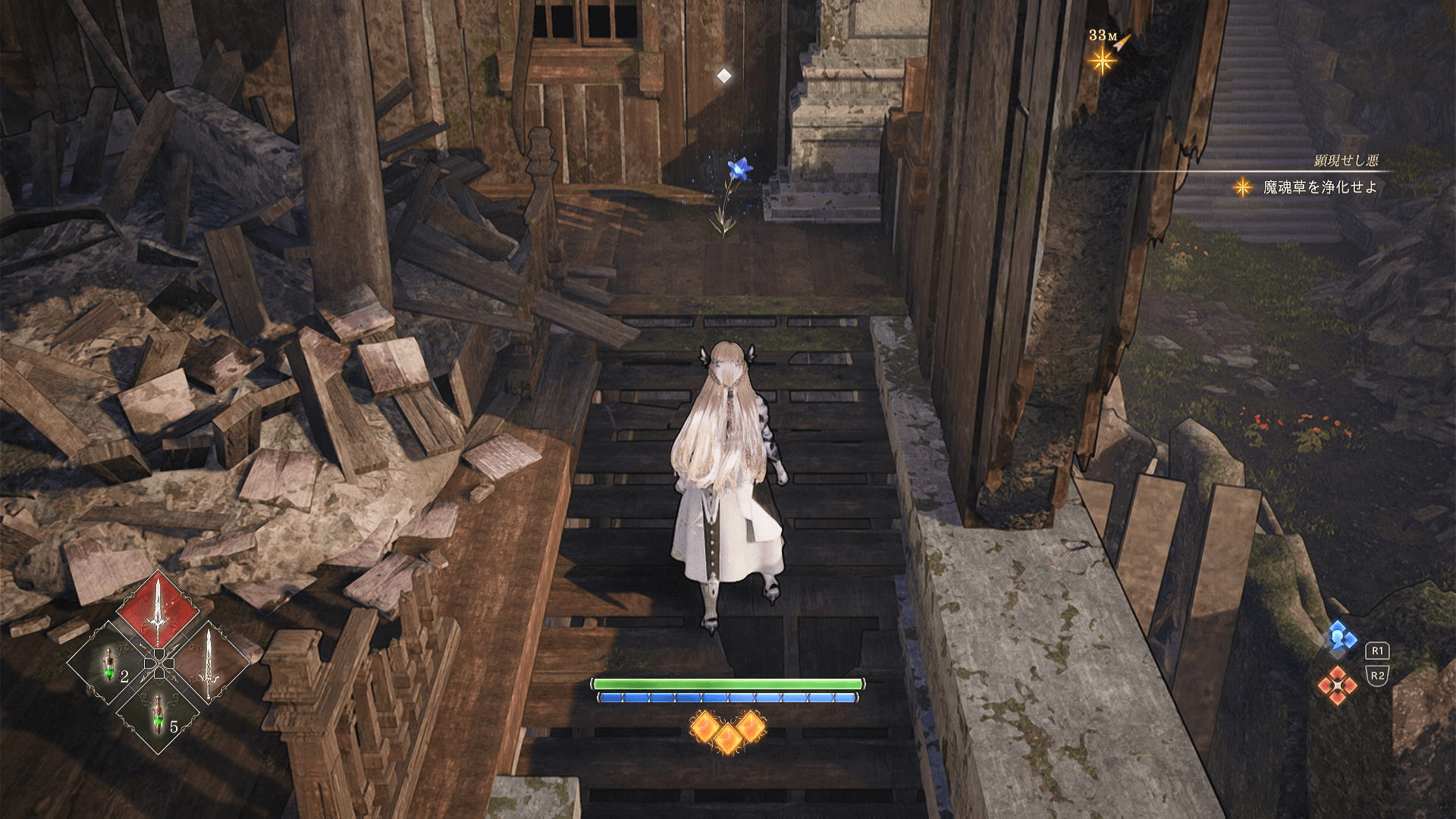 欠魂花とは、各マップに点在する収集アイテムのことだ。欠魂花は青い花の見た目をしており、近づいてL2ボタンを押すと入手できる。