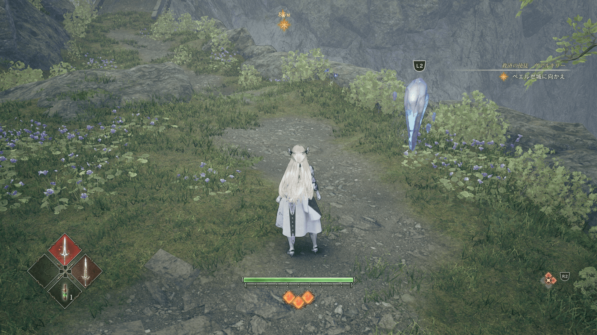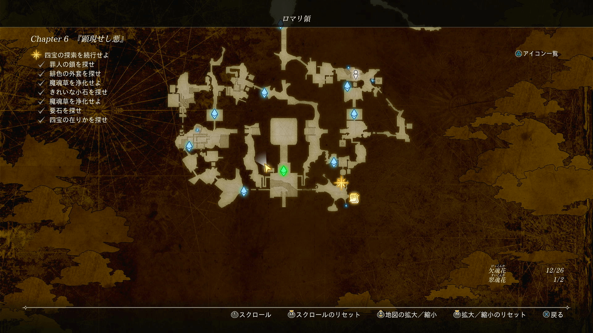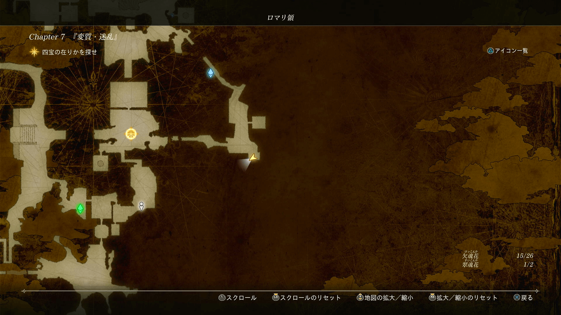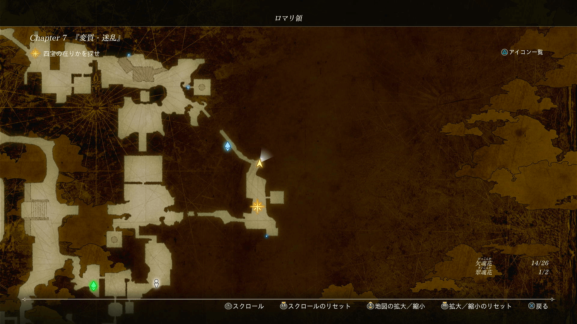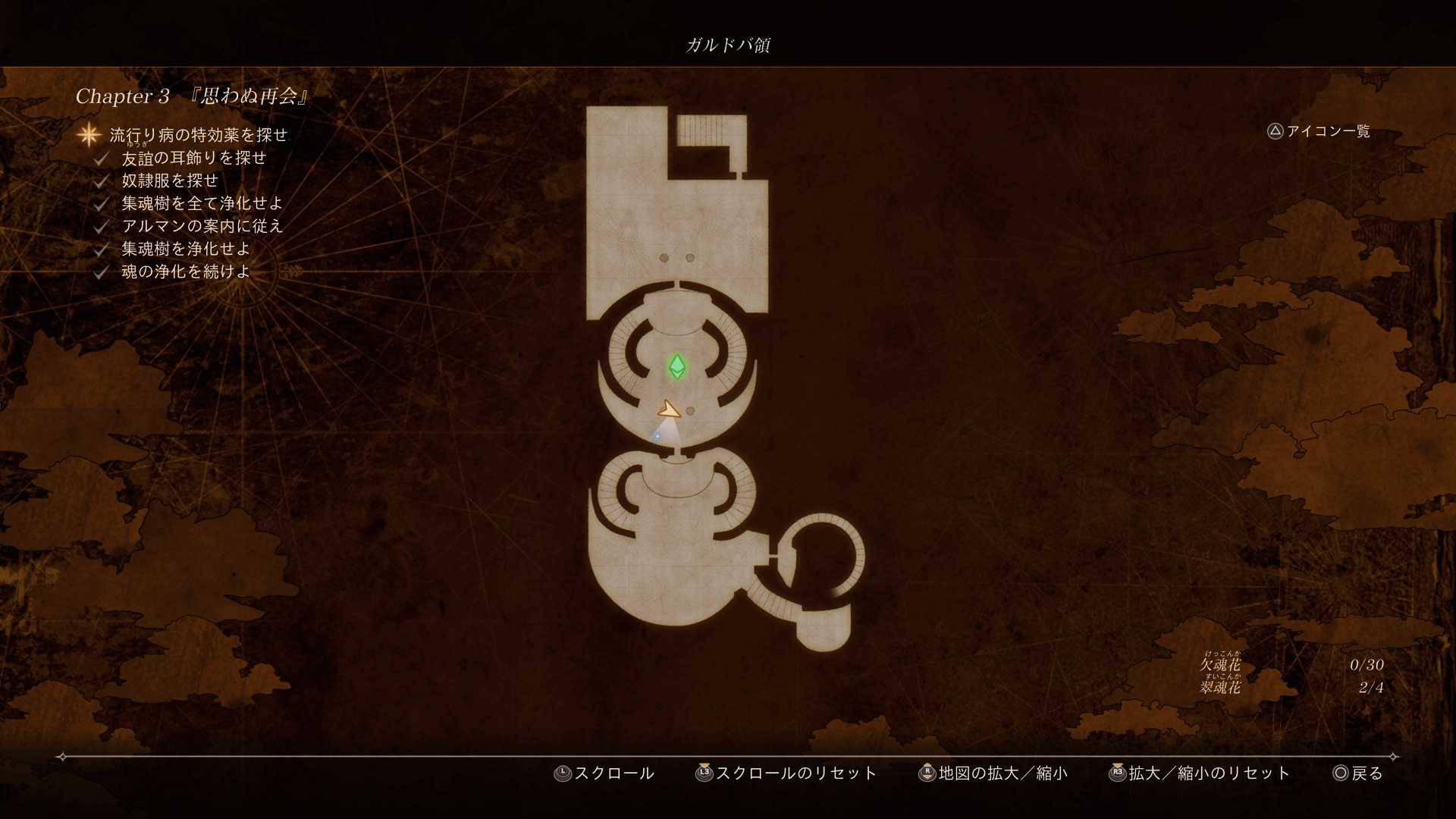 欠魂花とは、各マップに点在する収集アイテムのことだ。欠魂花は青い花の見た目をしており、近づいてL2ボタンを押すと入手できる。