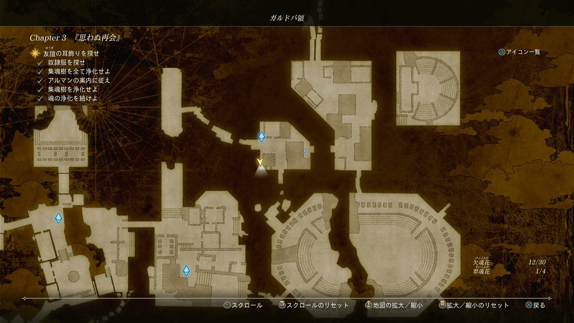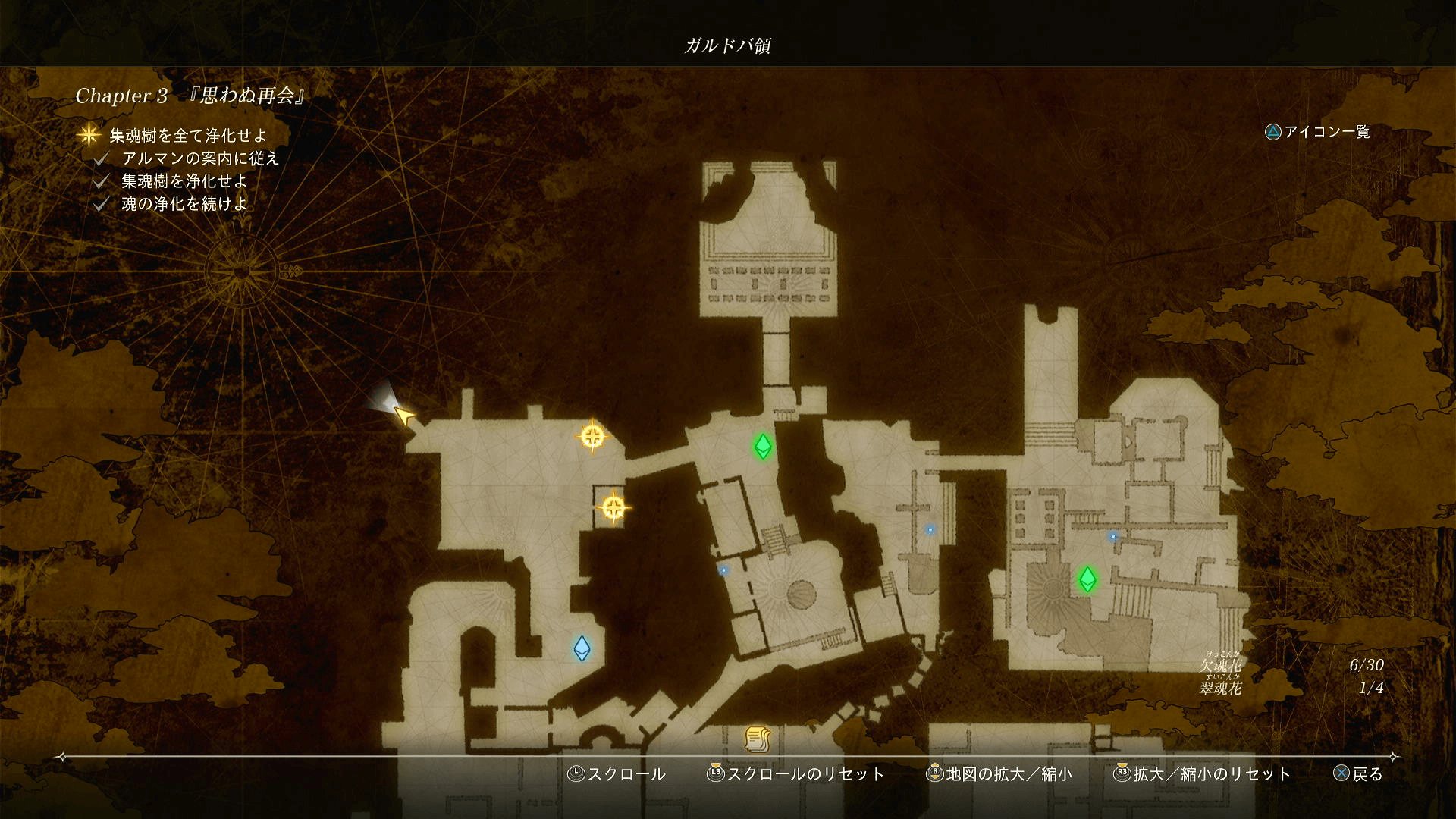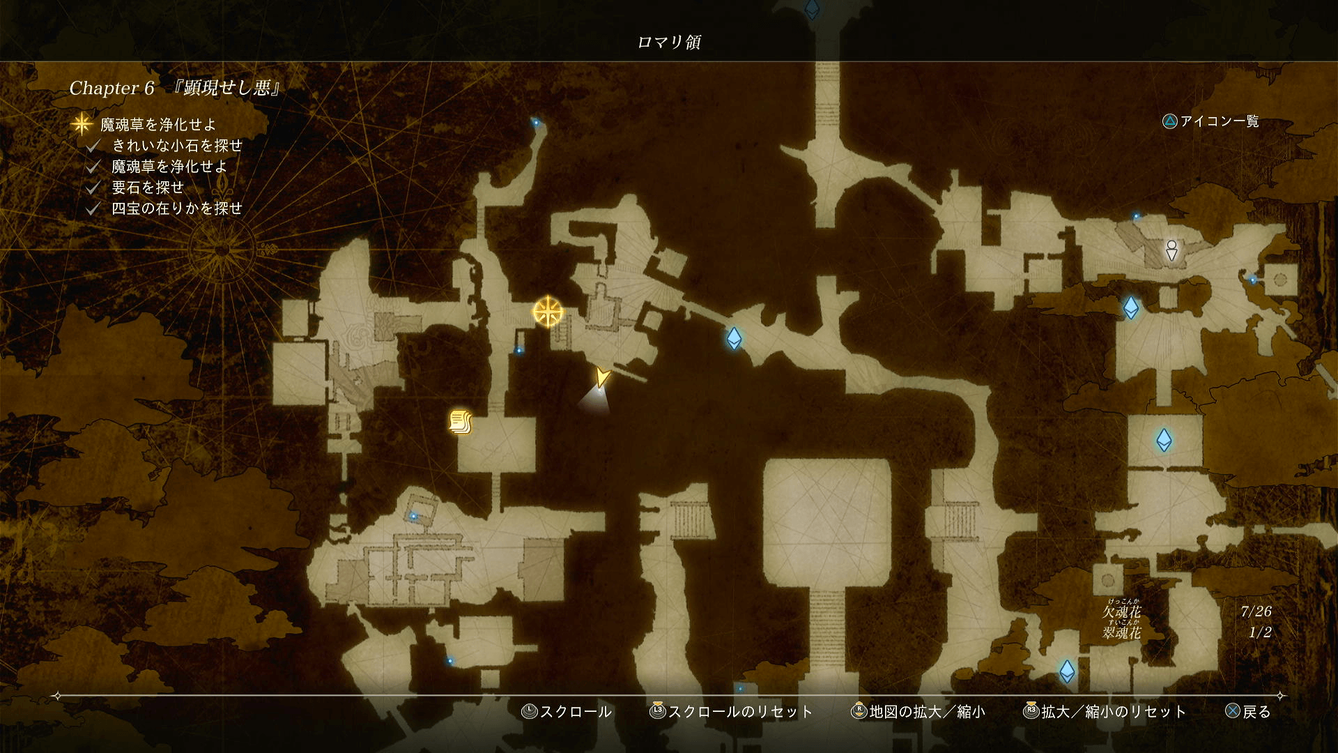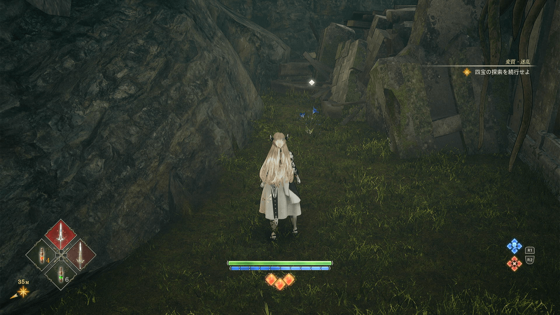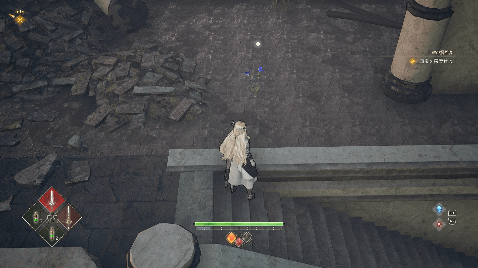 欠魂花とは、各マップに点在する収集アイテムのことだ。欠魂花は青い花の見た目をしており、近づいてL2ボタンを押すと入手できる。