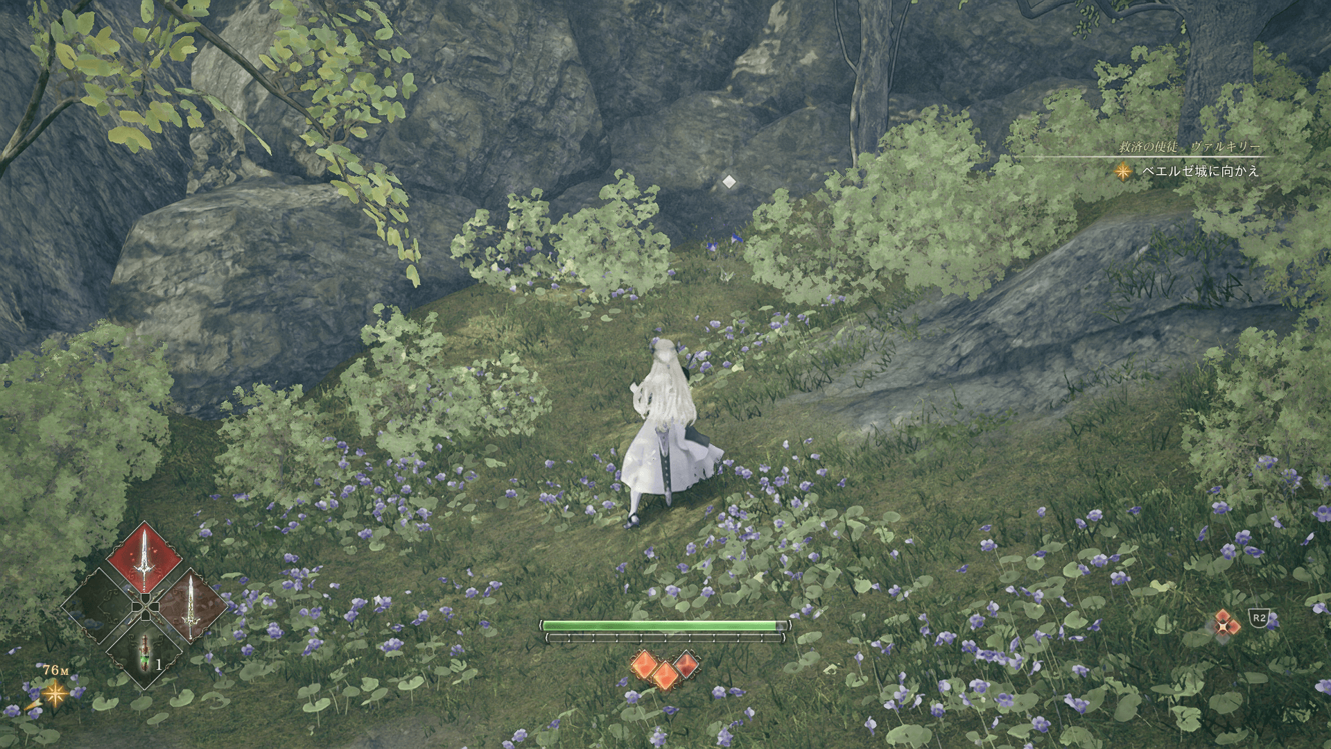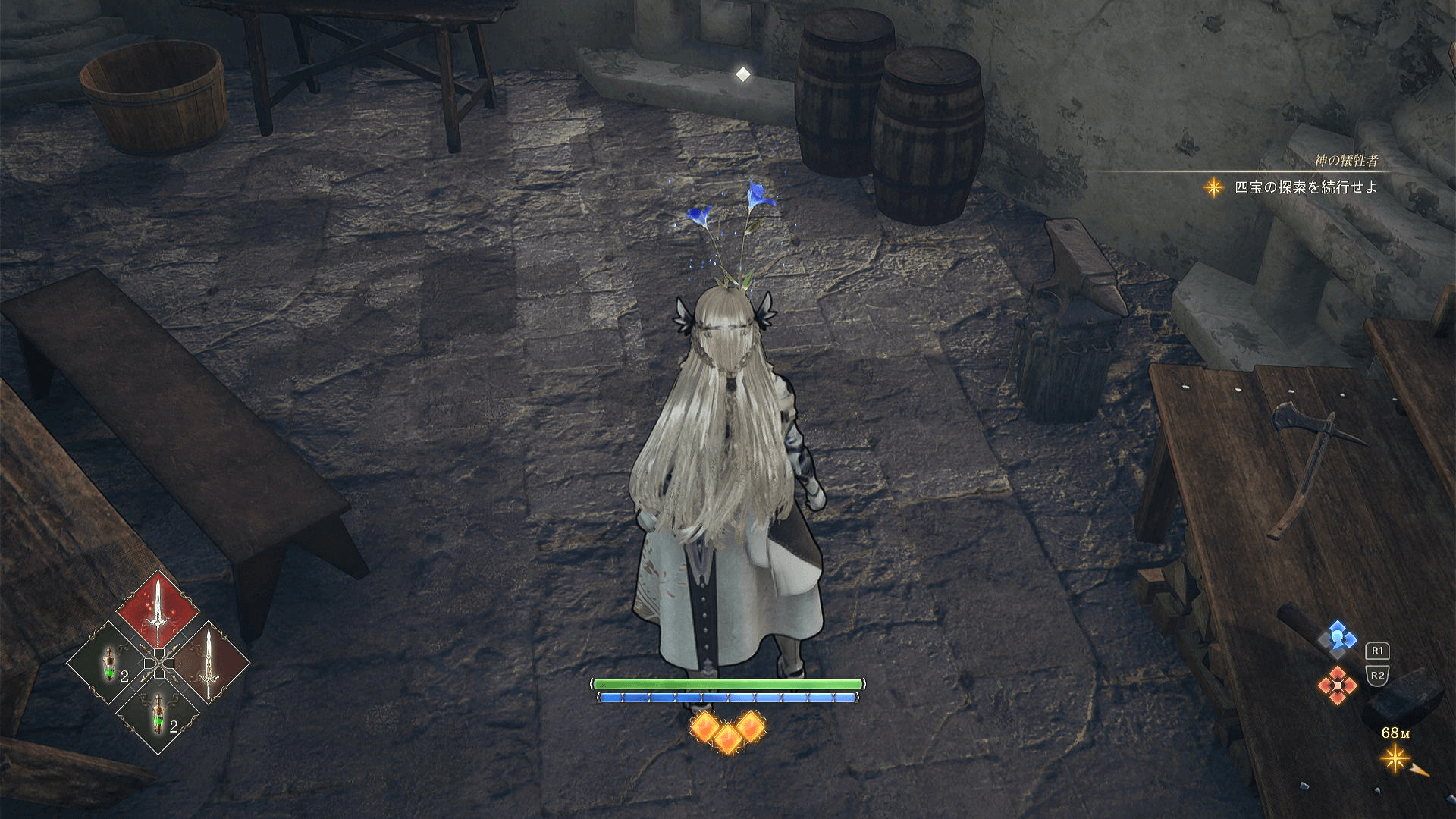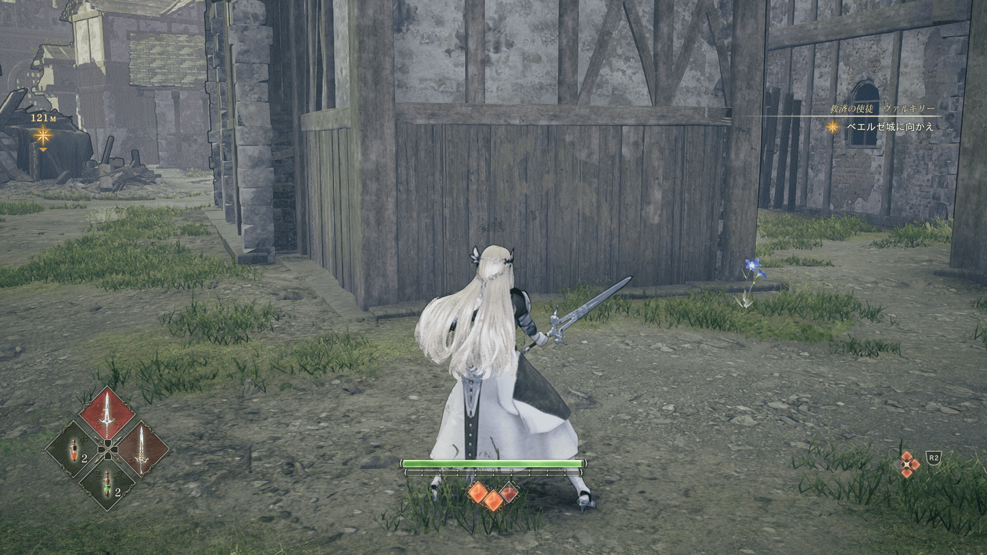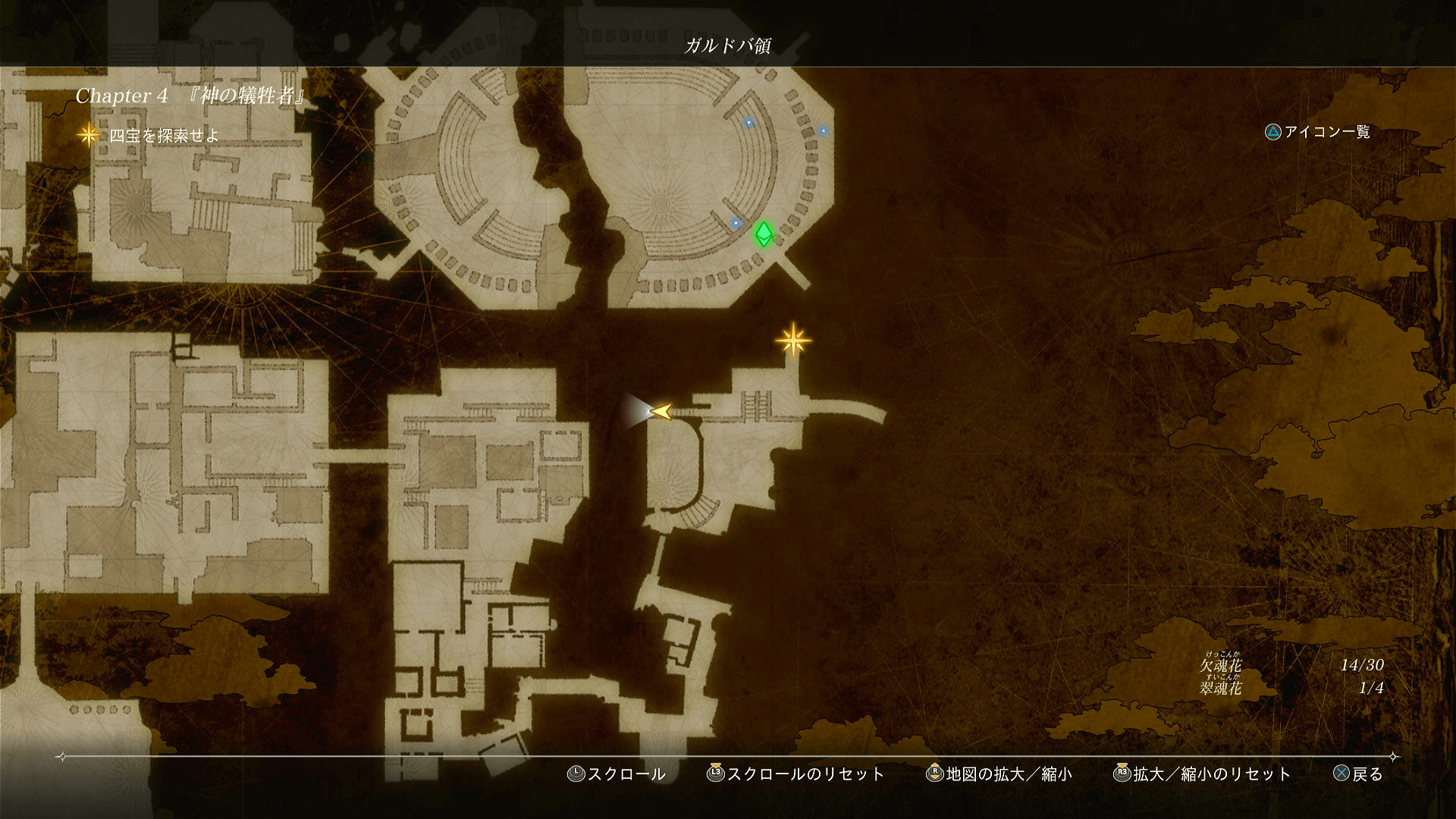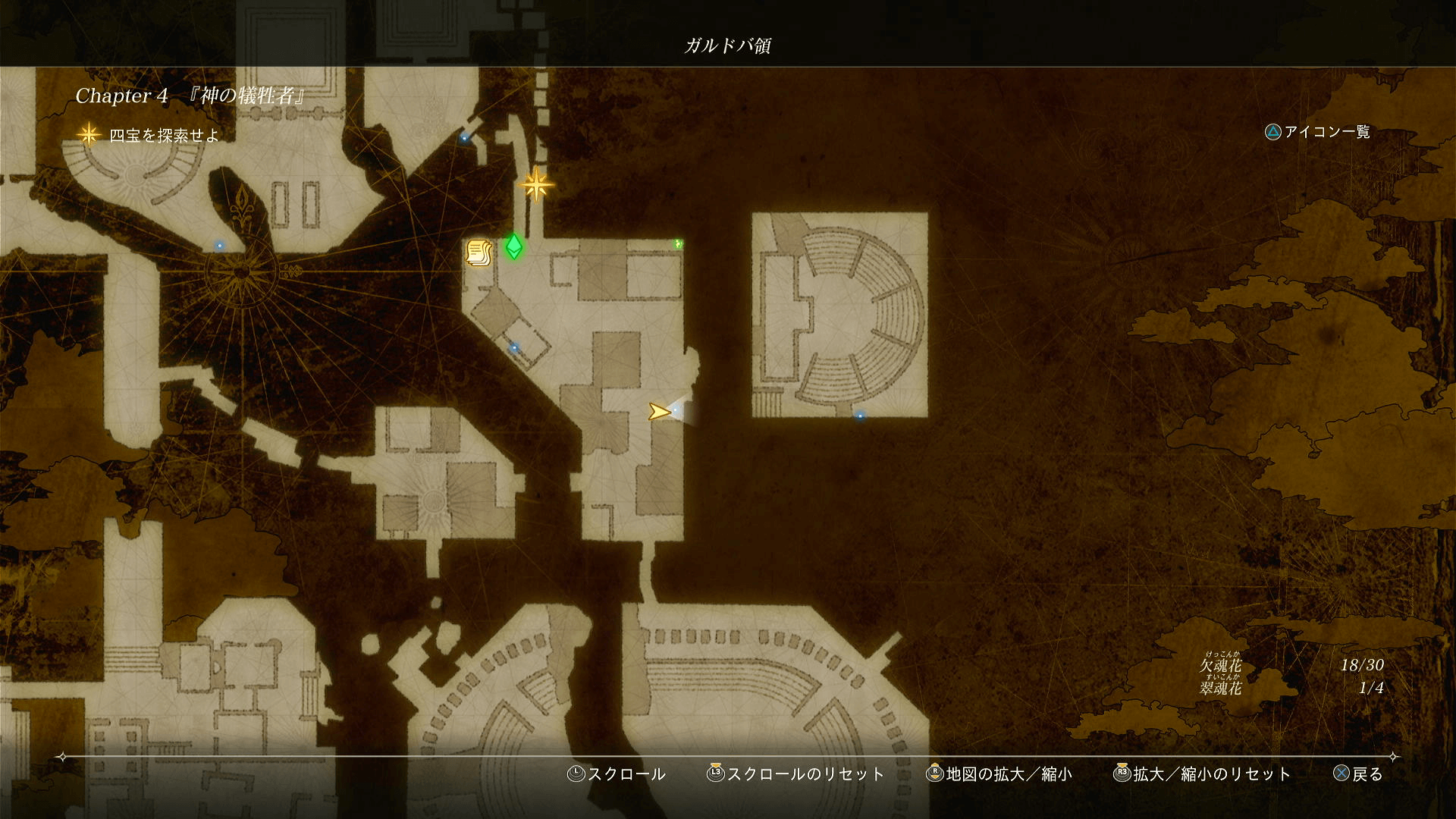 欠魂花とは、各マップに点在する収集アイテムのことだ。欠魂花は青い花の見た目をしており、近づいてL2ボタンを押すと入手できる。