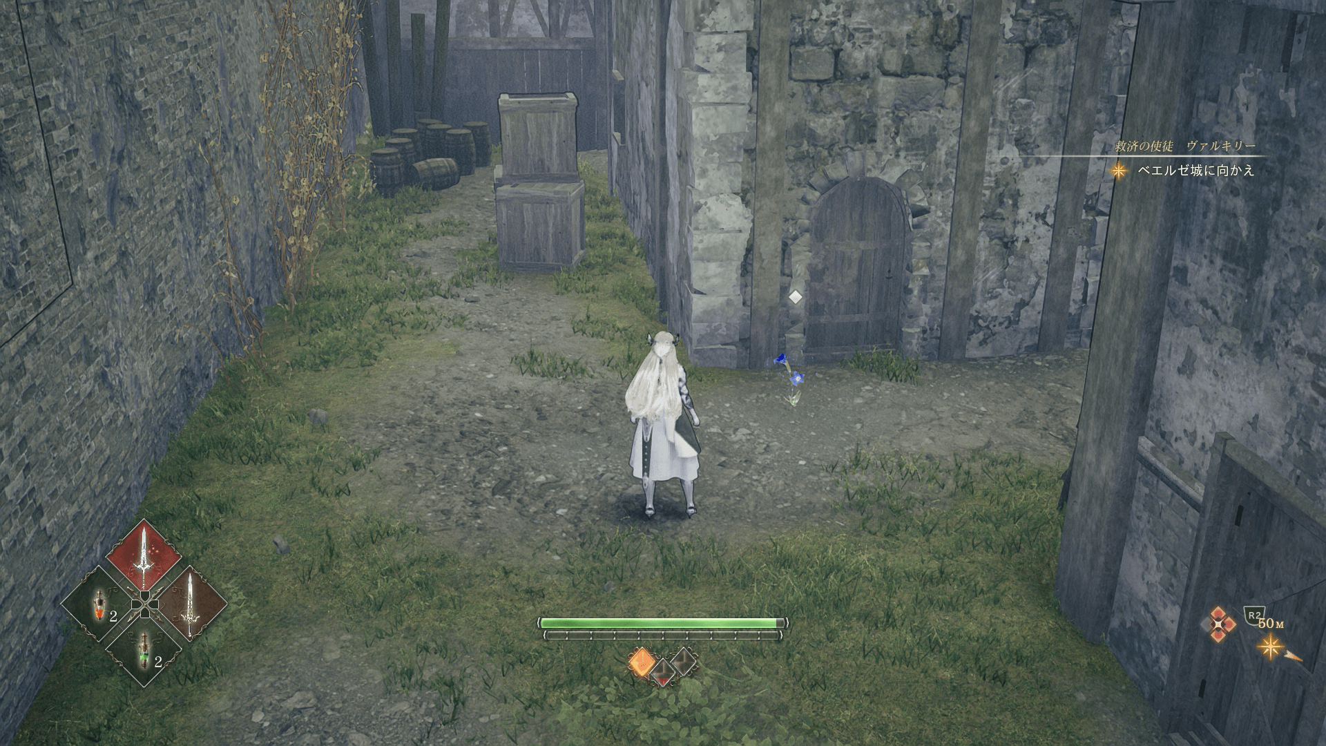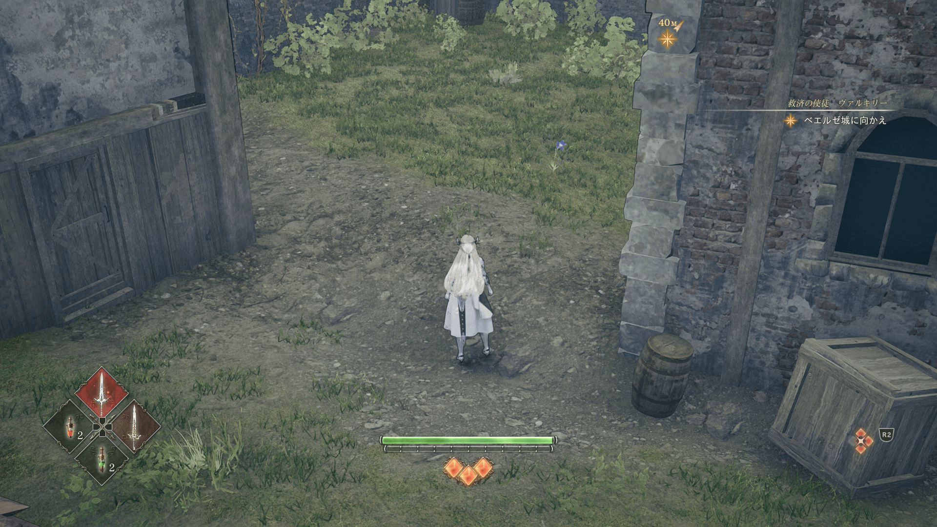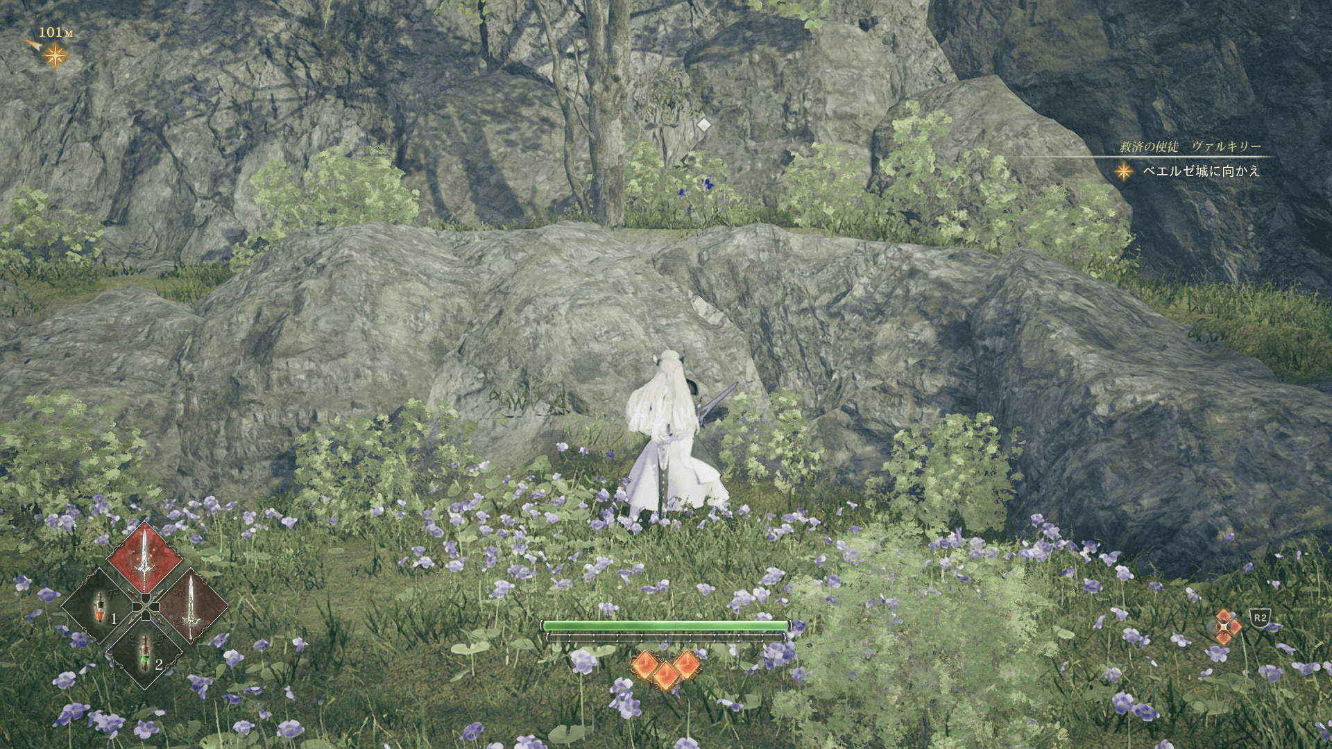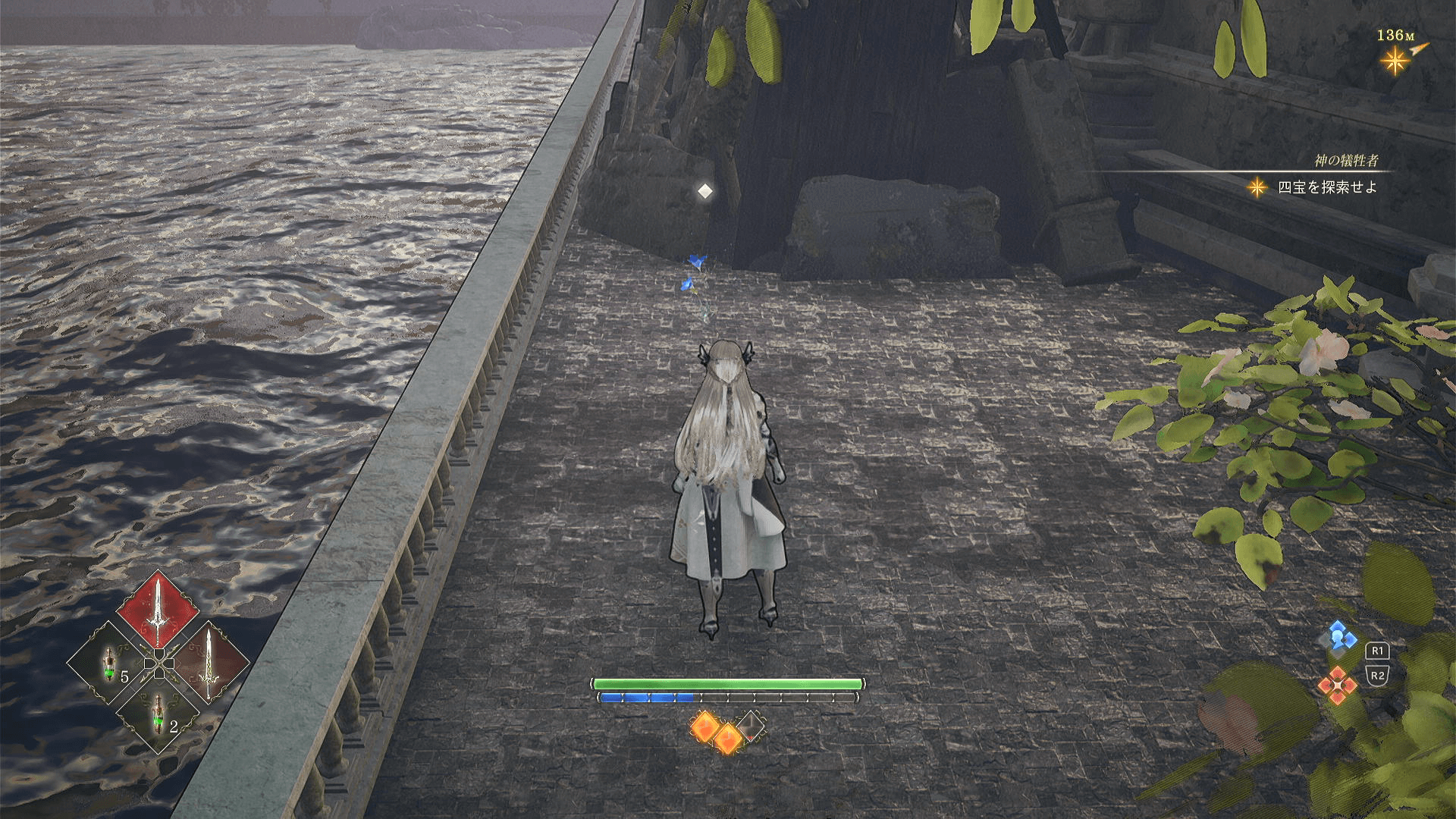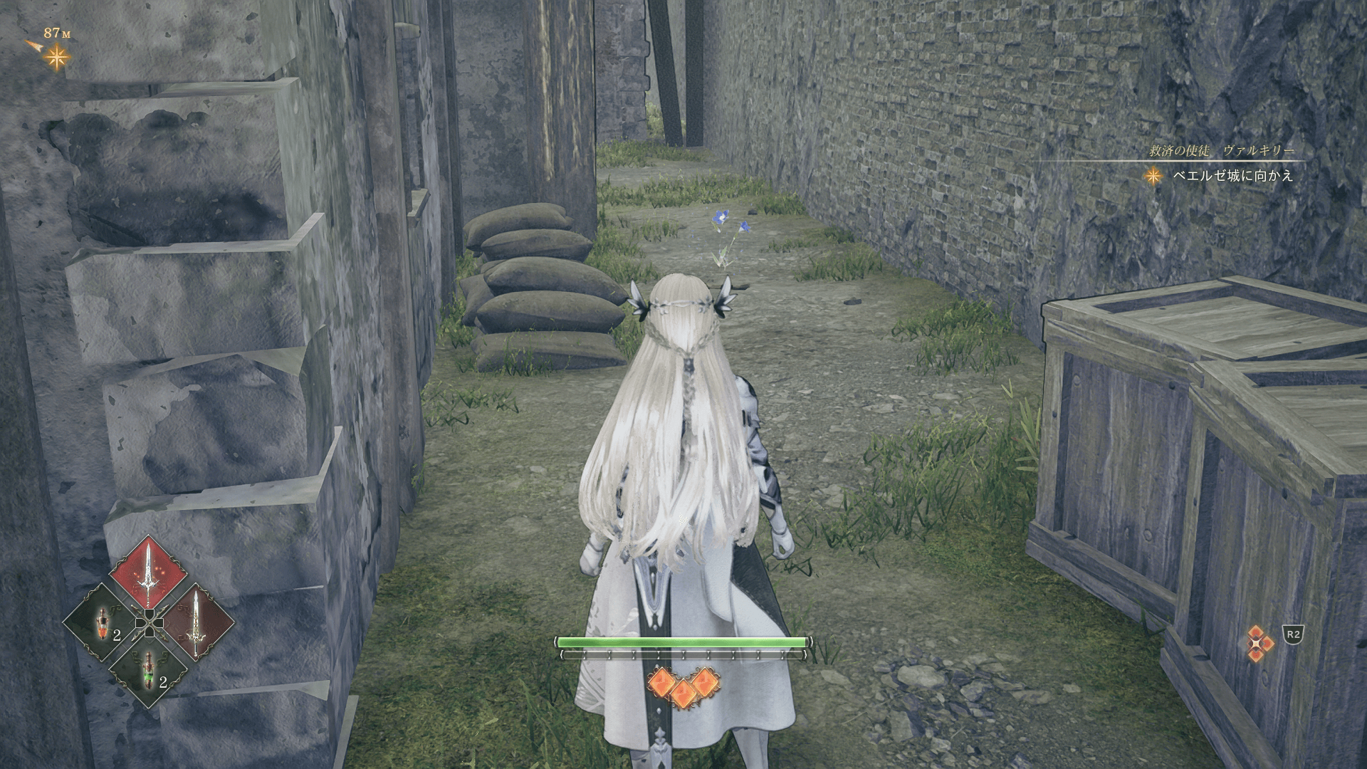 欠魂花とは、各マップに点在する収集アイテムのことだ。欠魂花は青い花の見た目をしており、近づいてL2ボタンを押すと入手できる。