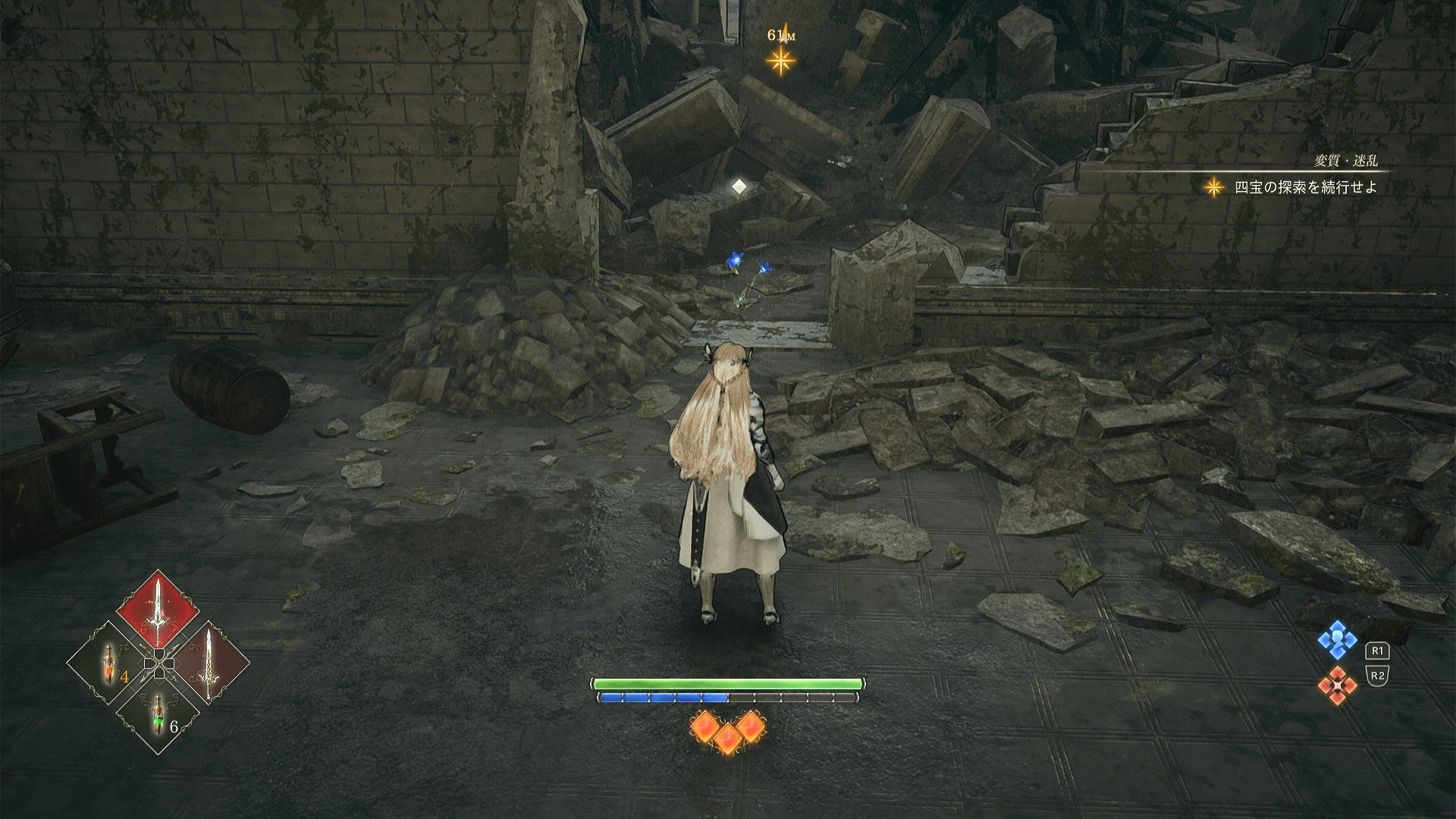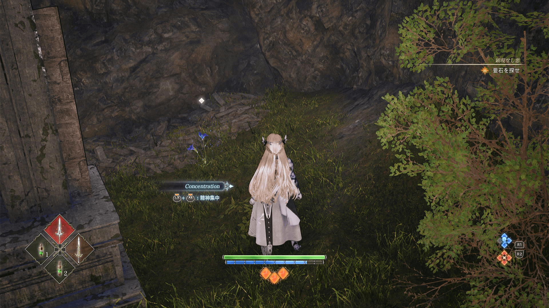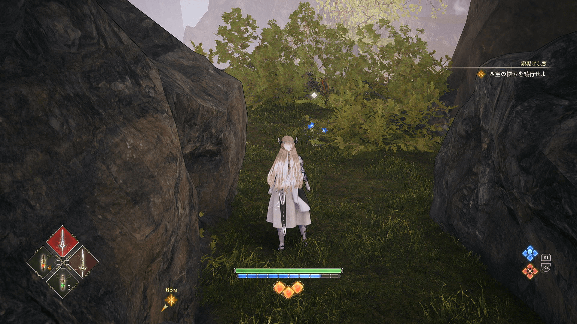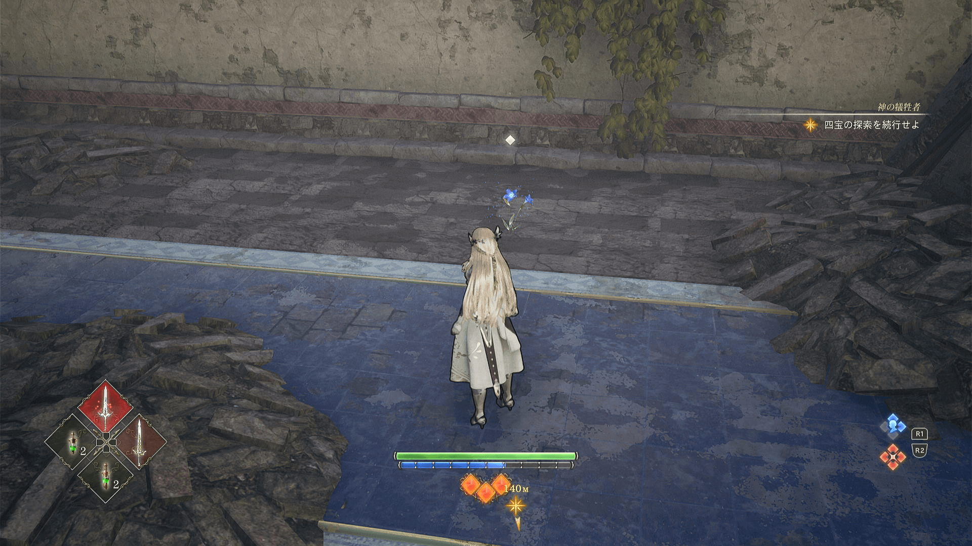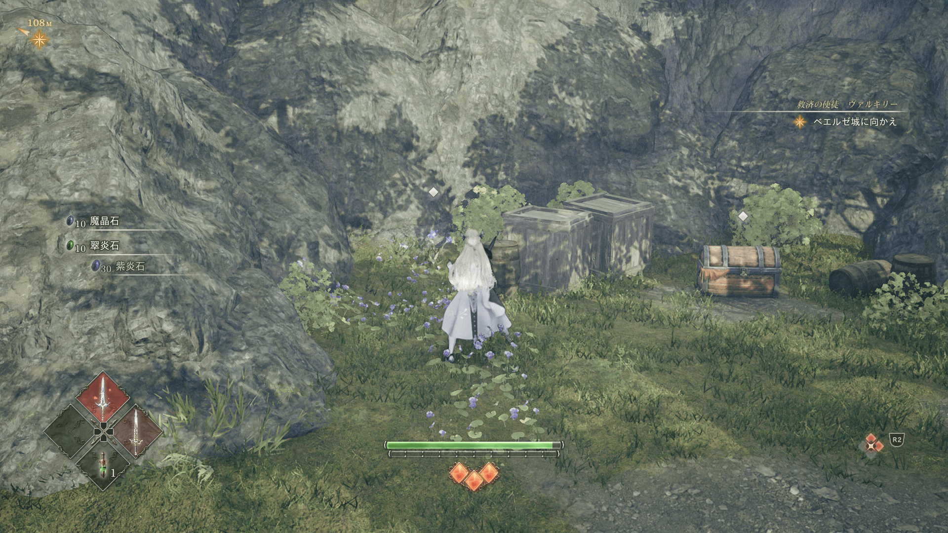 欠魂花とは、各マップに点在する収集アイテムのことだ。欠魂花は青い花の見た目をしており、近づいてL2ボタンを押すと入手できる。