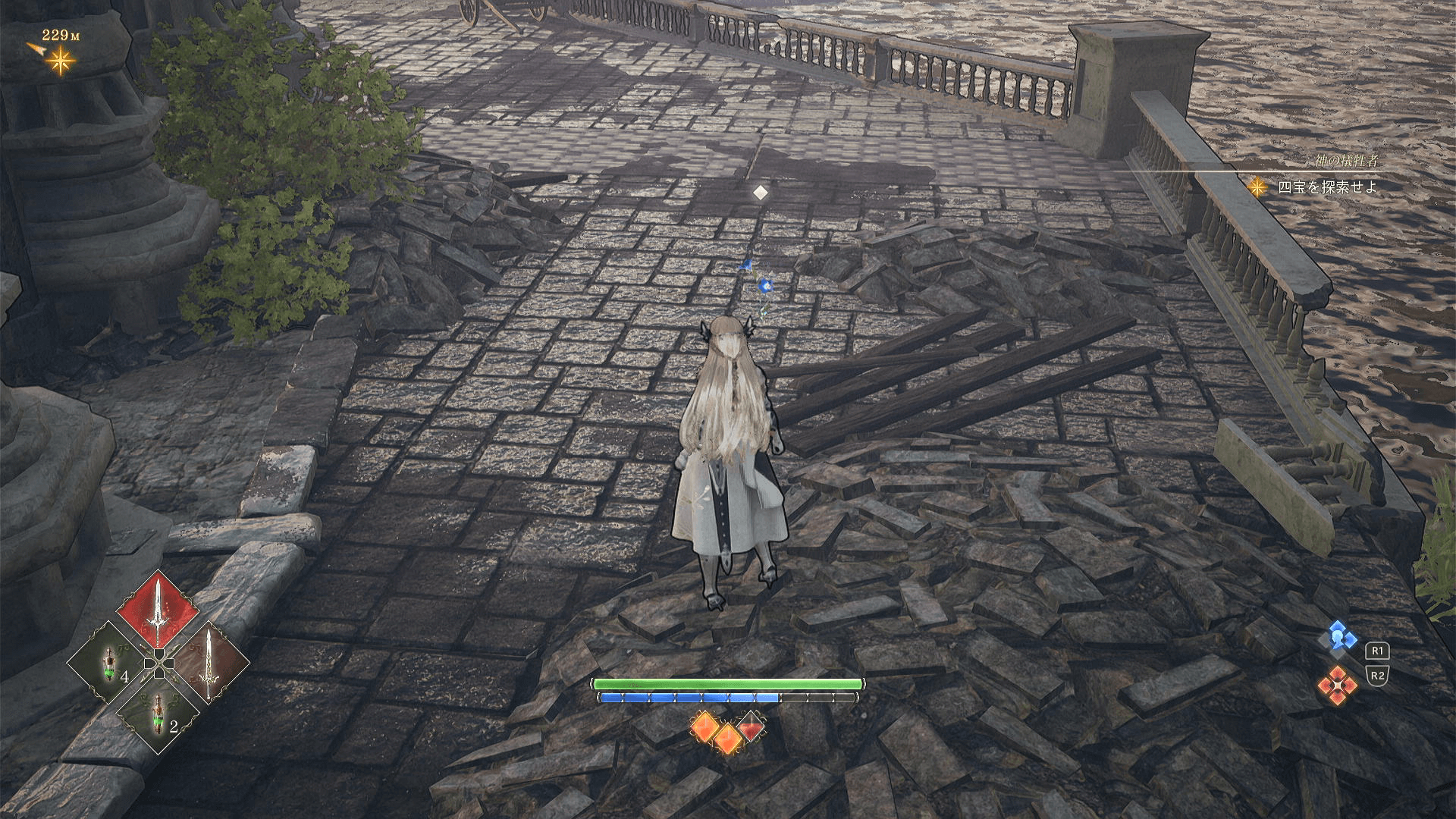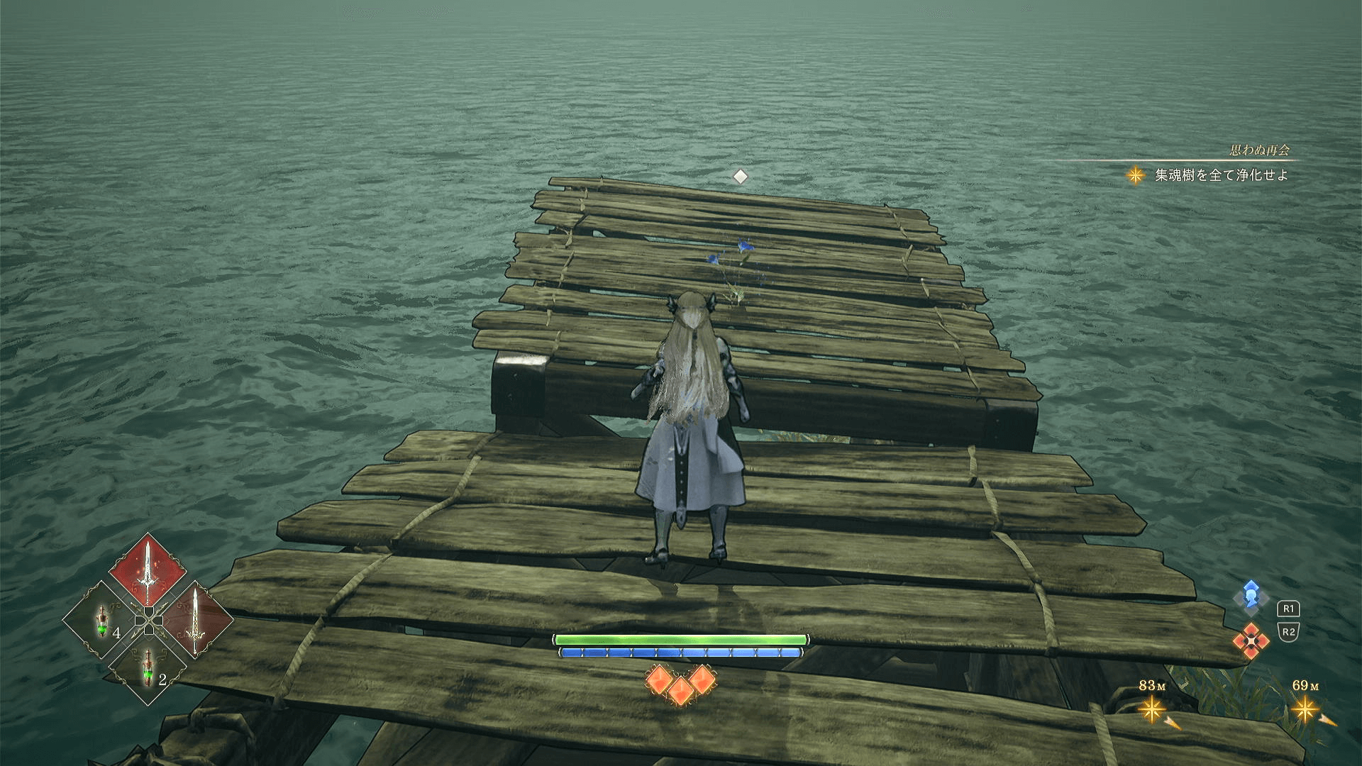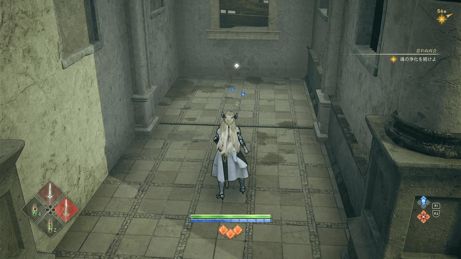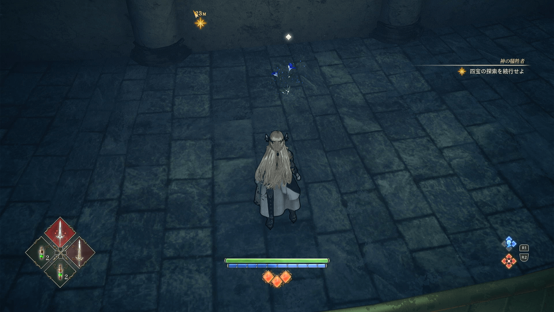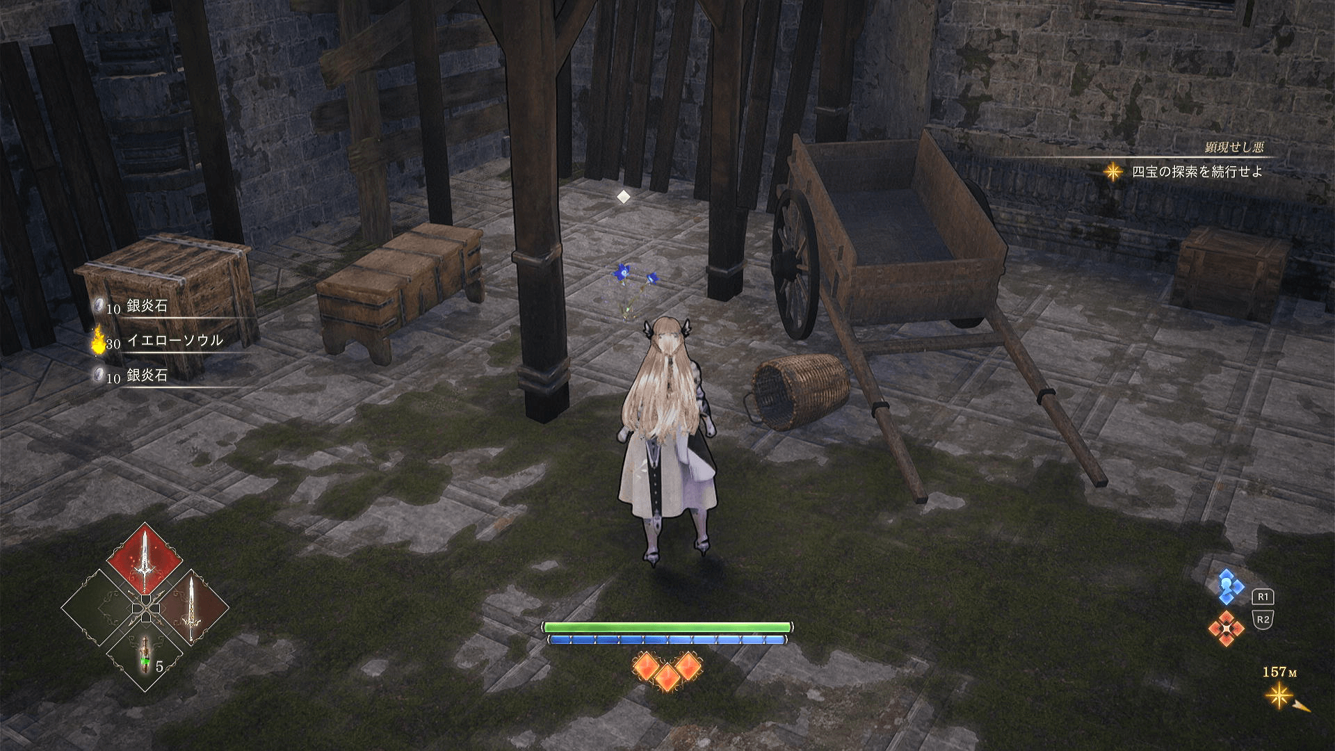 欠魂花とは、各マップに点在する収集アイテムのことだ。欠魂花は青い花の見た目をしており、近づいてL2ボタンを押すと入手できる。