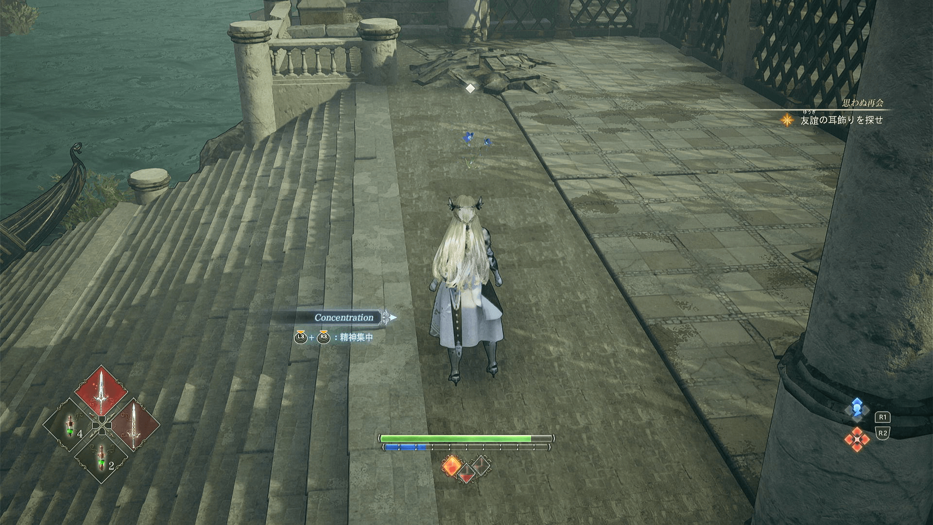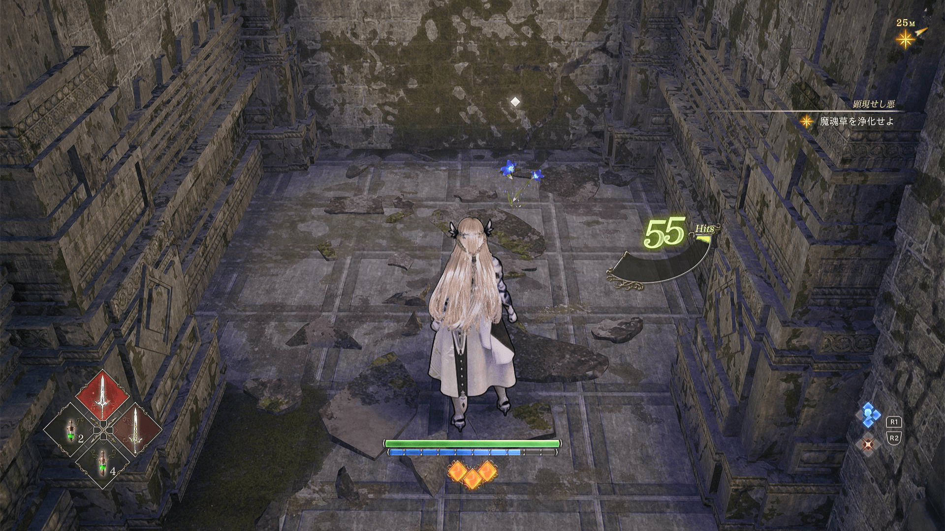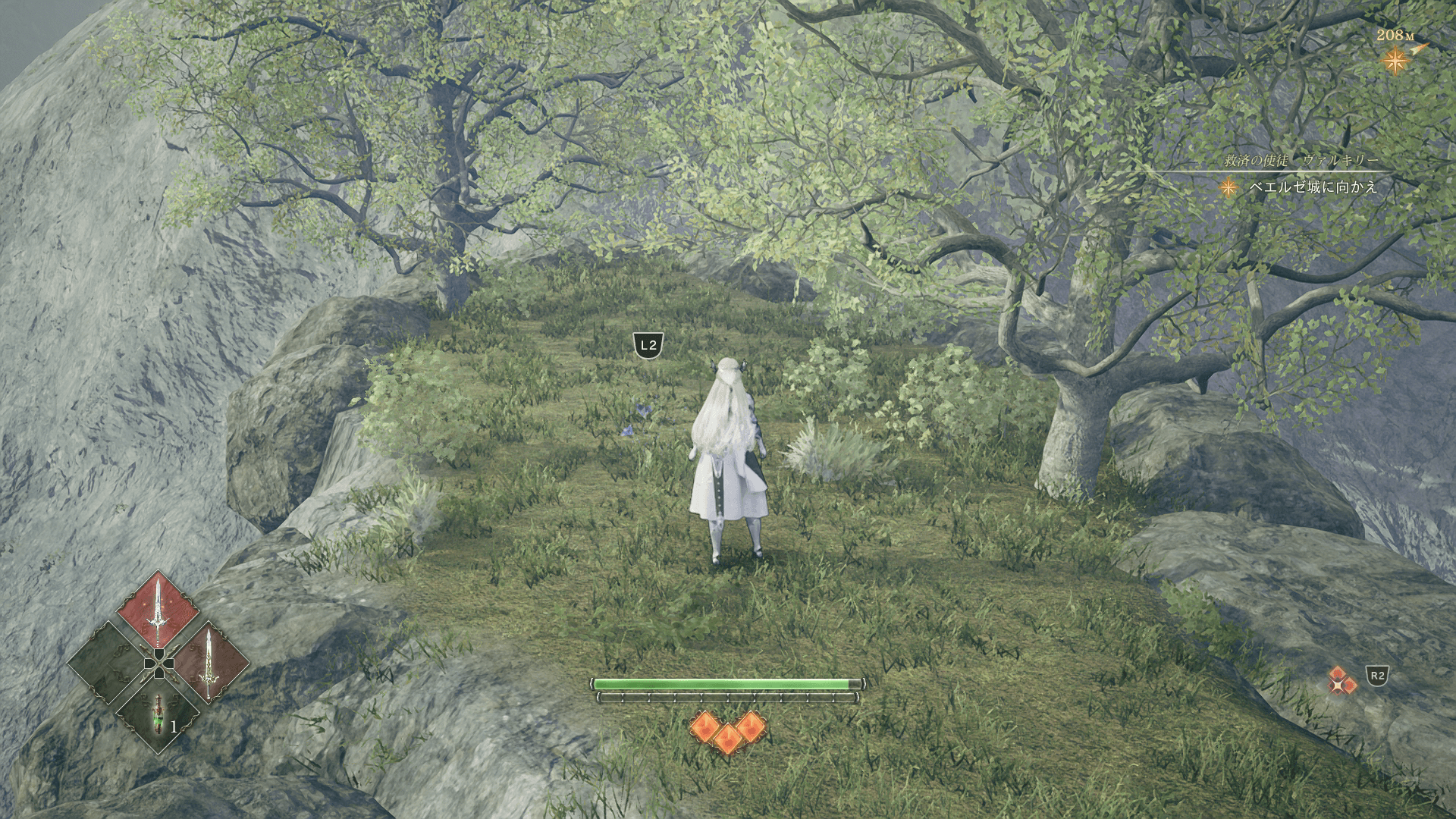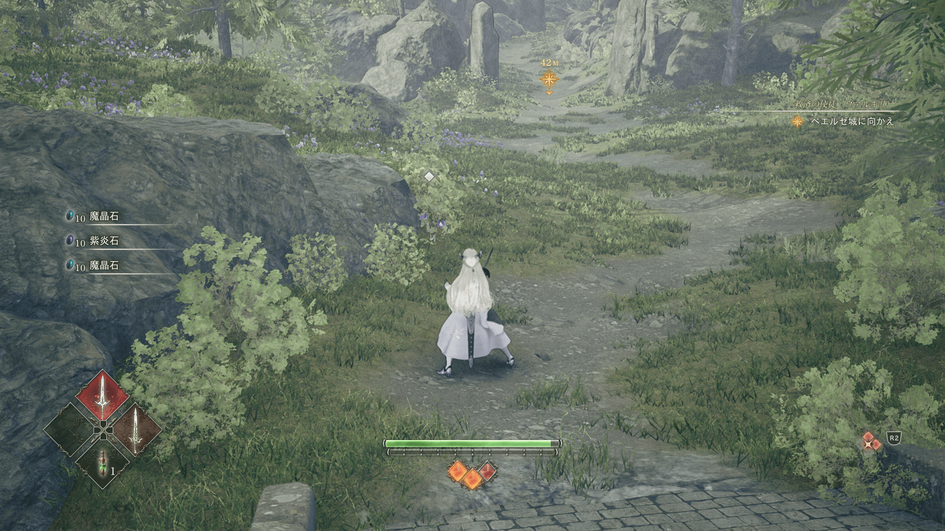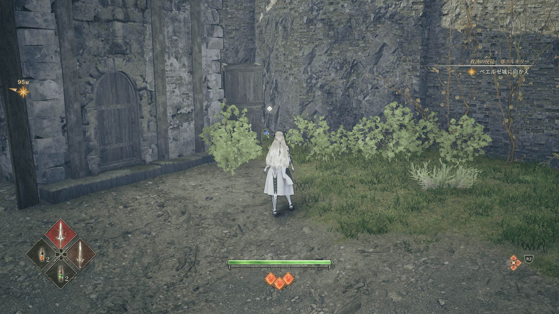 欠魂花とは、各マップに点在する収集アイテムのことだ。欠魂花は青い花の見た目をしており、近づいてL2ボタンを押すと入手できる。
