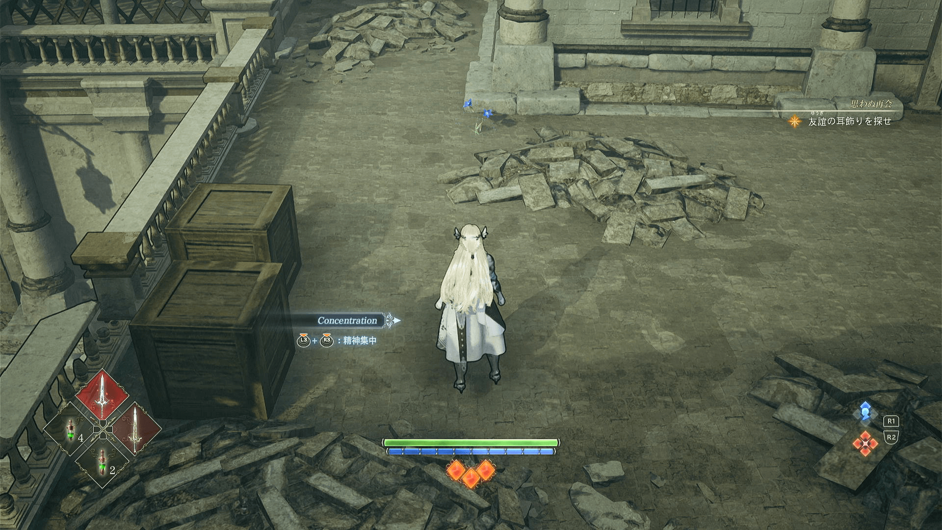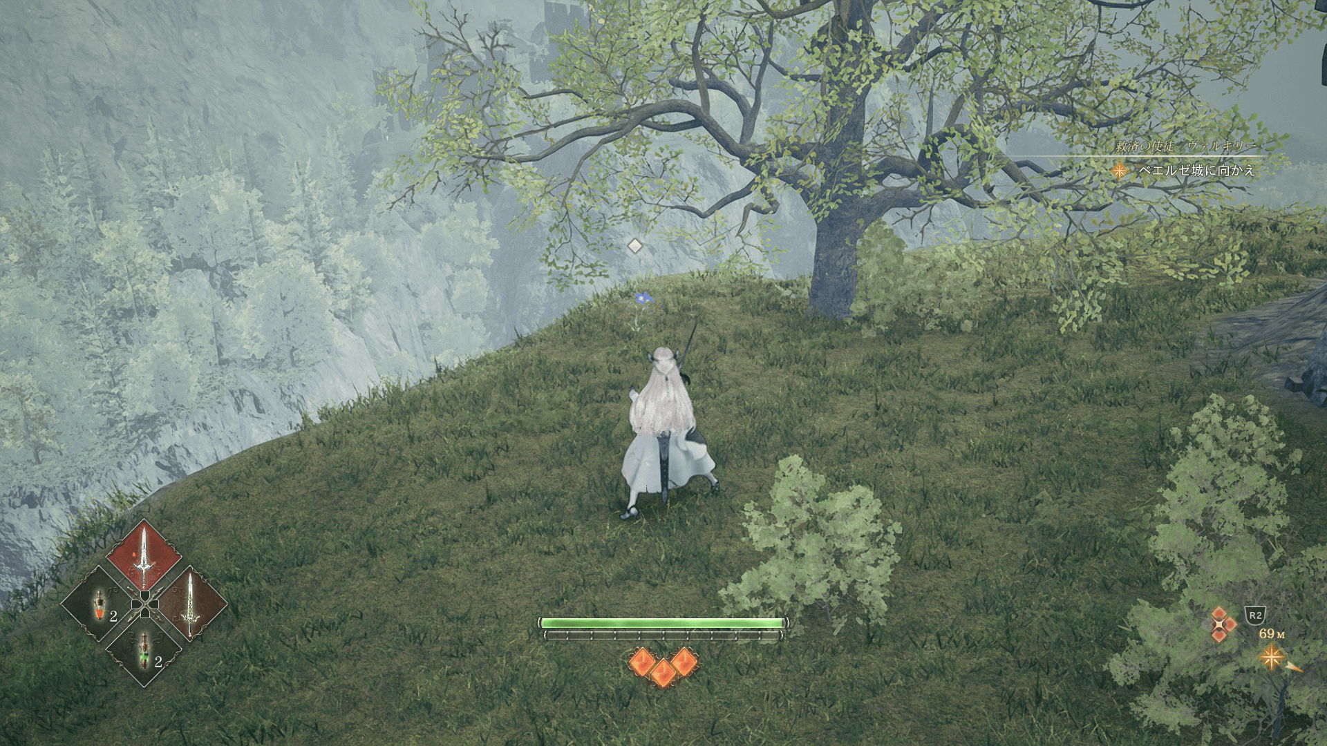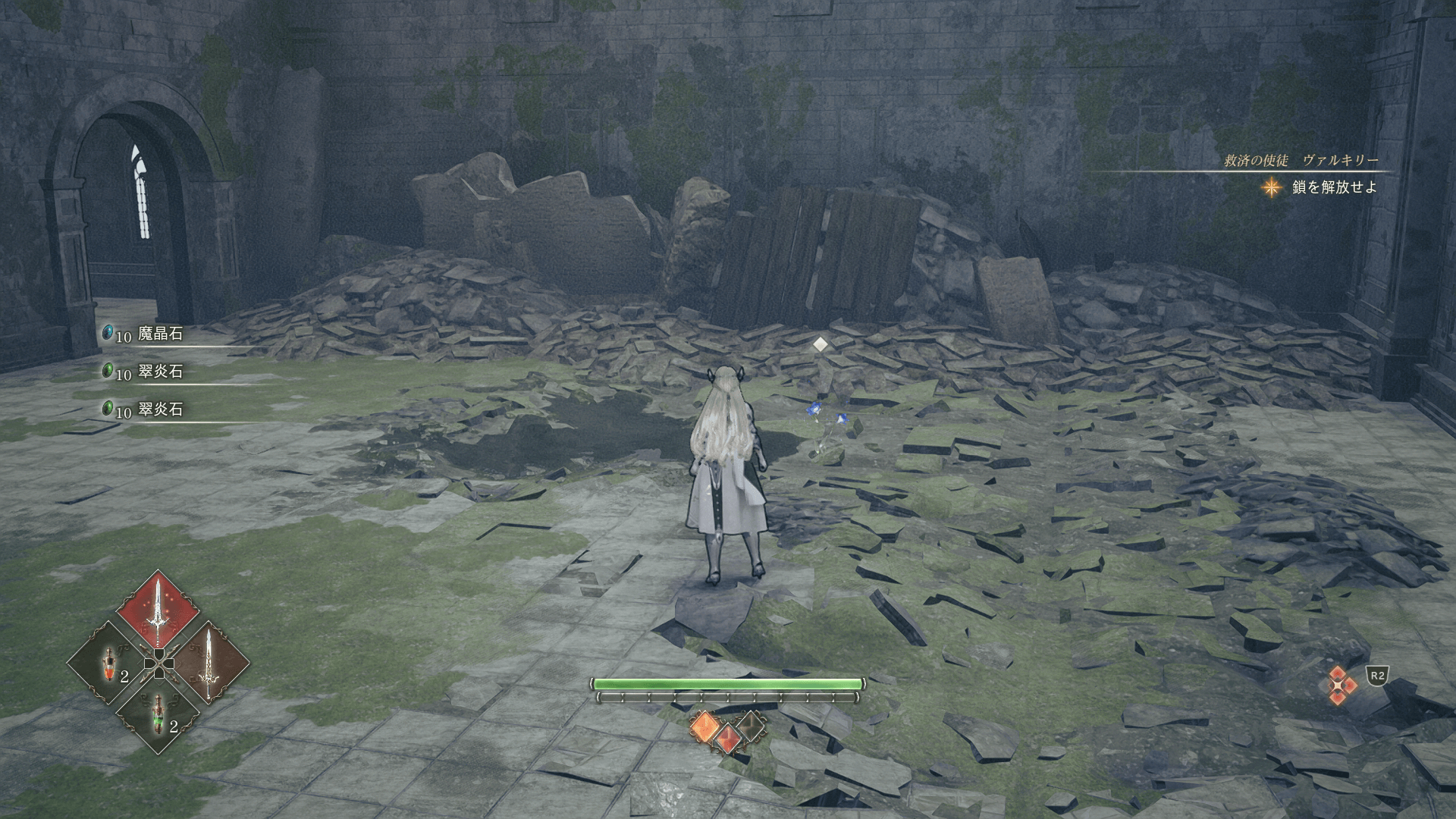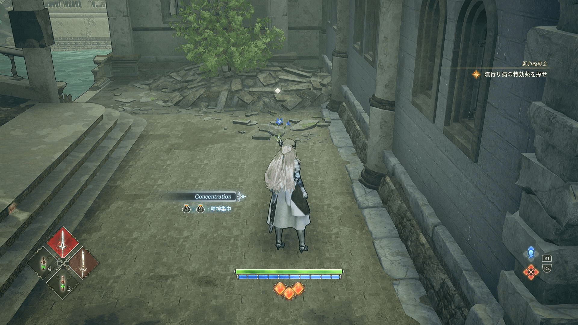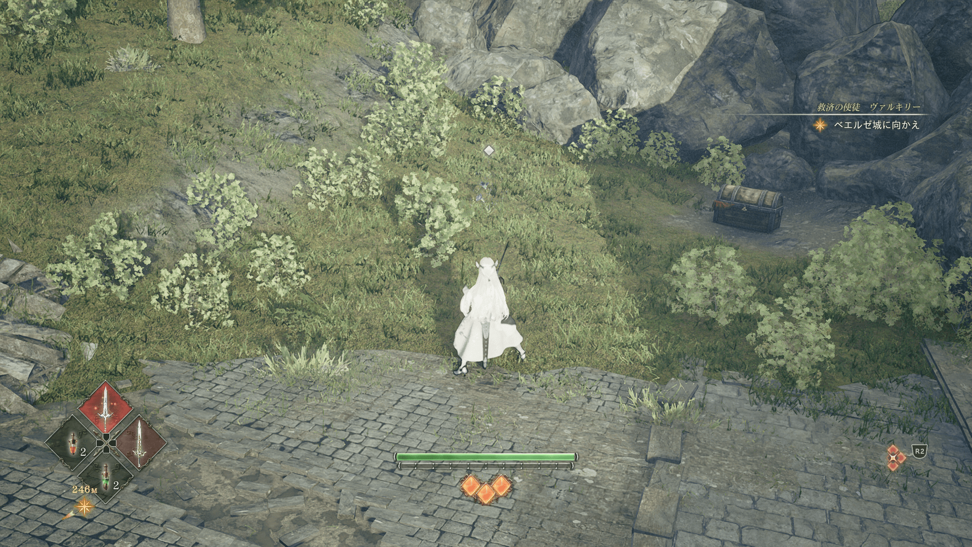欠魂花とは、各マップに点在する収集アイテムのことだ。欠魂花は青い花の見た目をしており、近づいてL2ボタンを押すと入手できる。