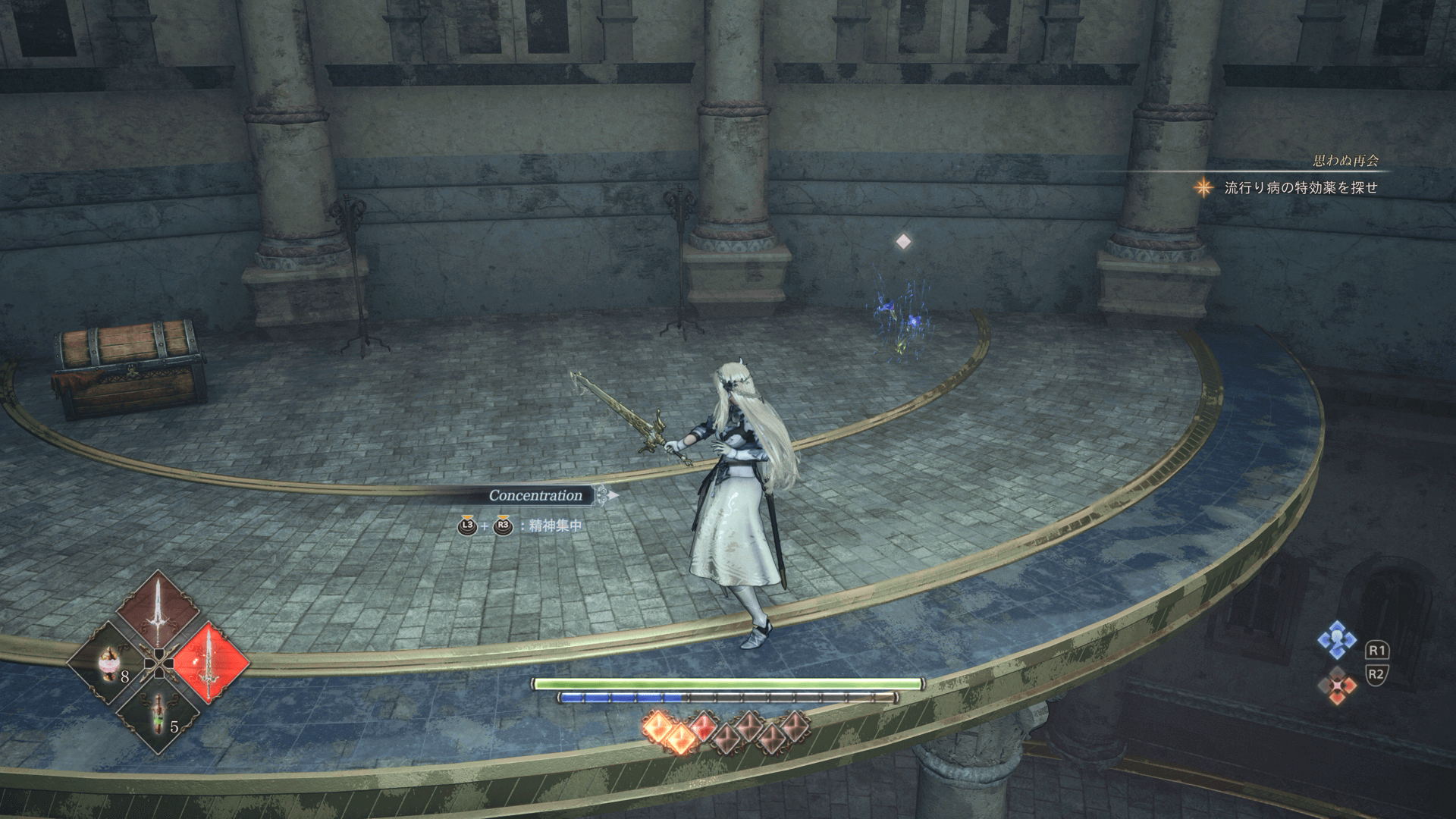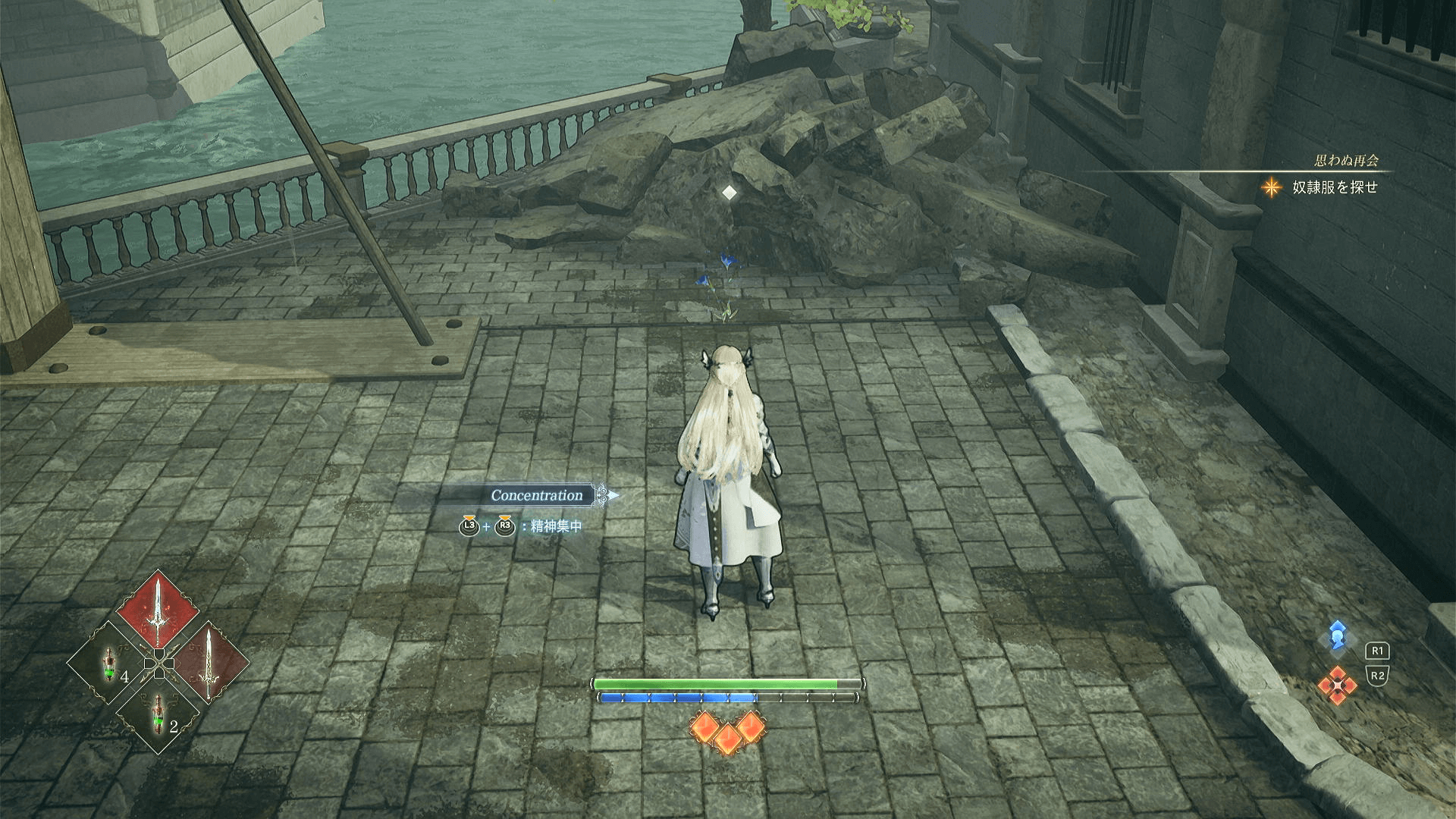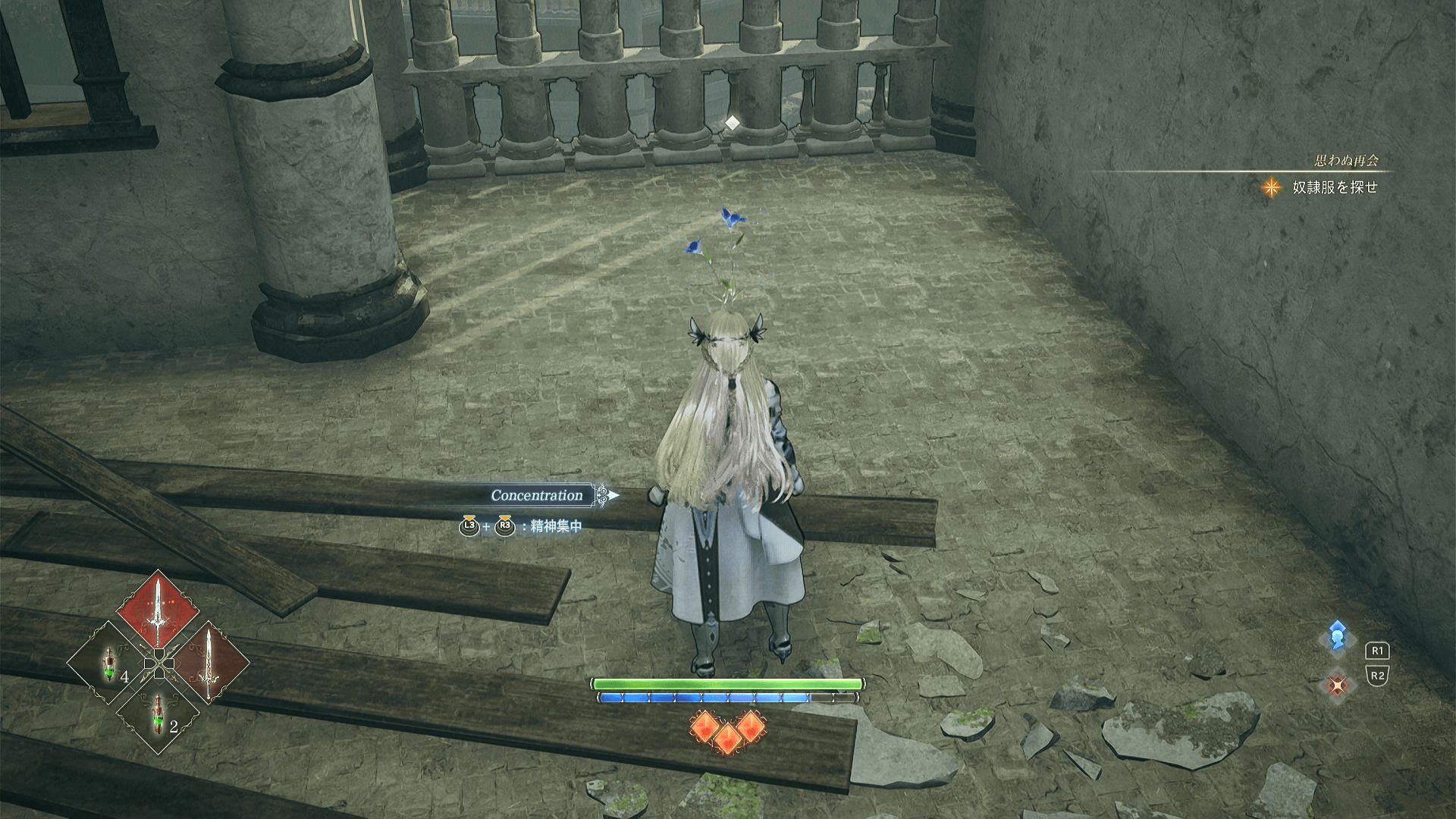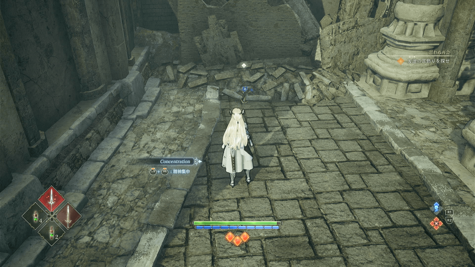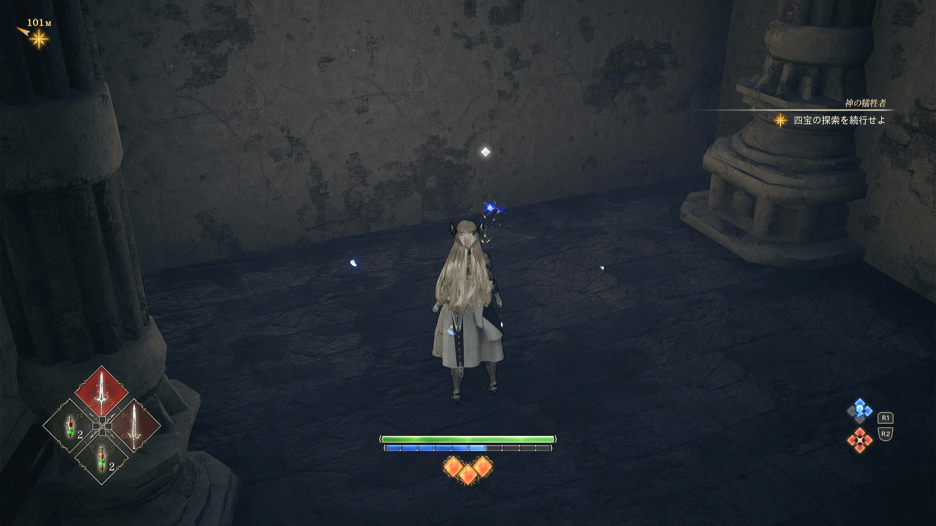 欠魂花とは、各マップに点在する収集アイテムのことだ。欠魂花は青い花の見た目をしており、近づいてL2ボタンを押すと入手できる。