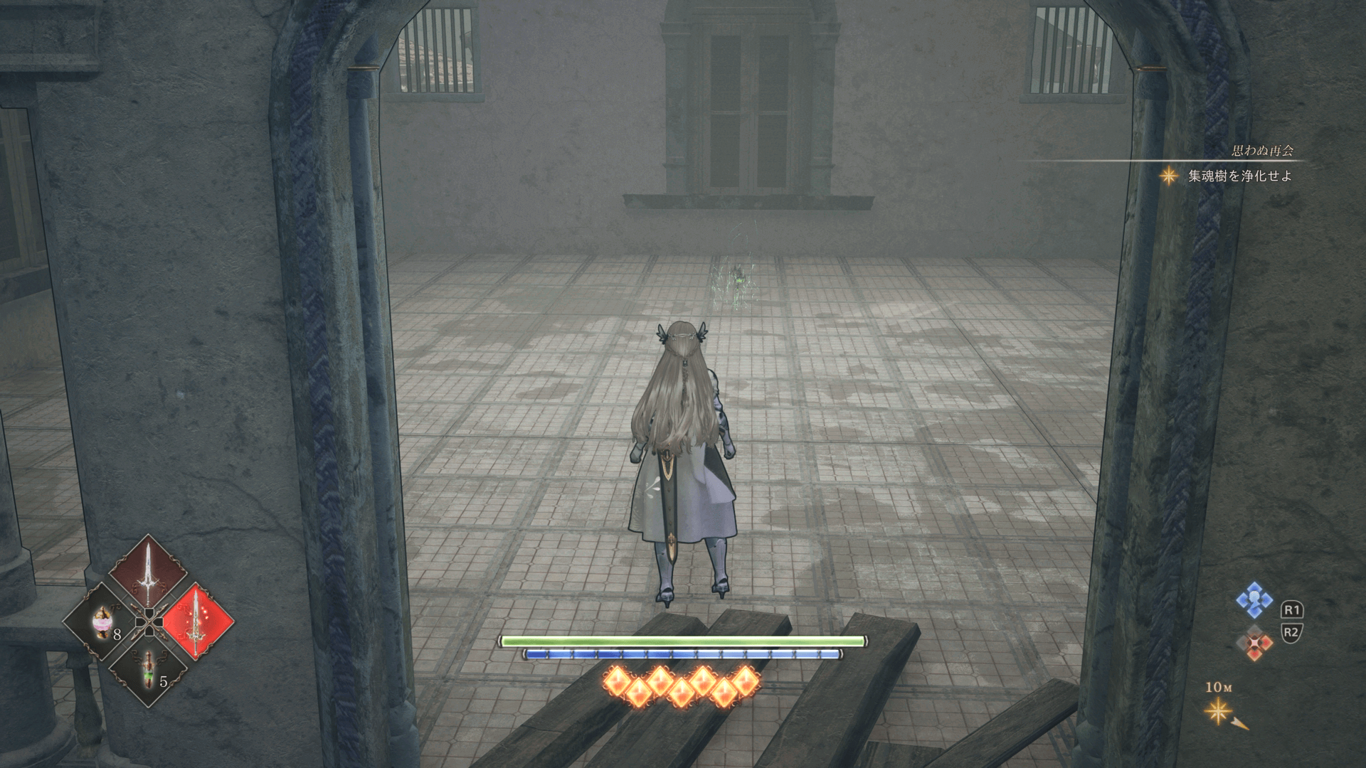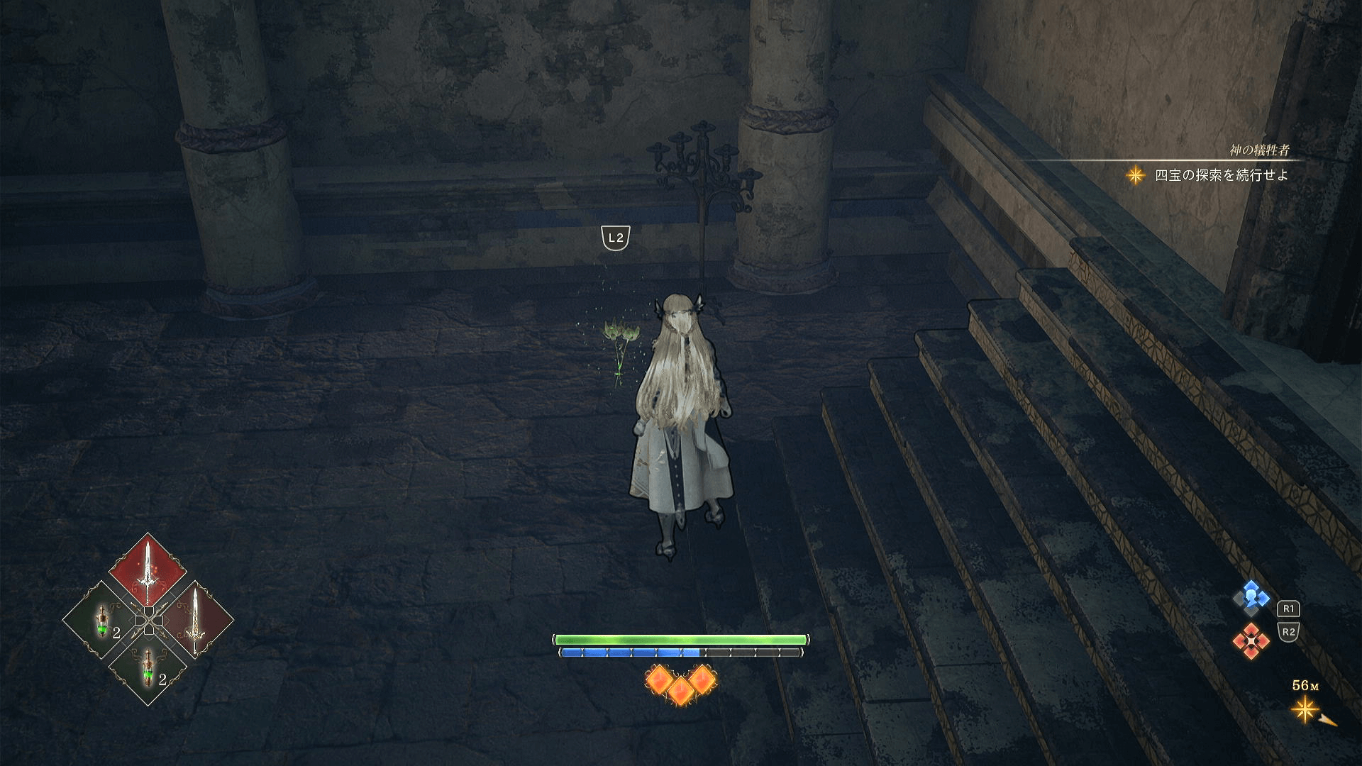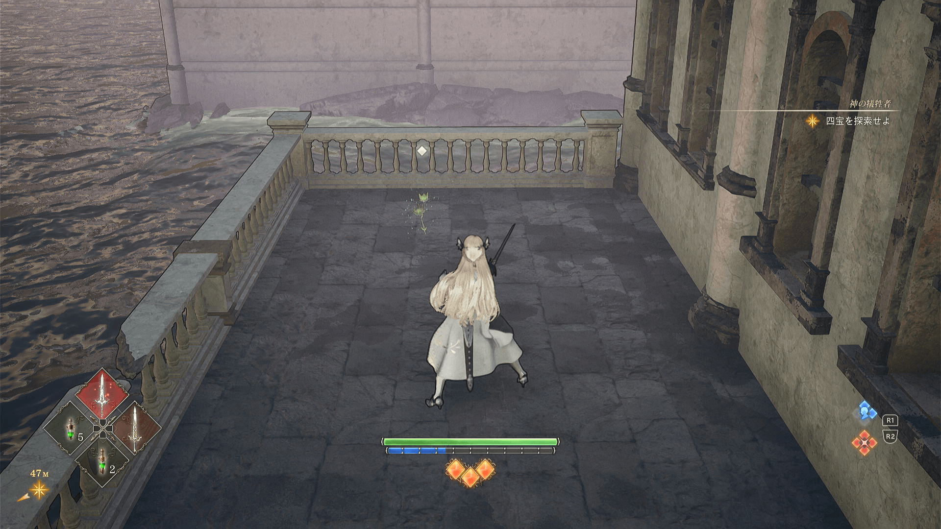 翠魂花とは、各マップに点在する収集アイテムのことだ。翠魂花は欠魂花と違ってメッセージが虫食い状態で表示されており、チャプター3時点では内容を確認できない。翠魂花は薄緑色の花の見た目をしており、近づいてL2ボタンを押すと入手できる。